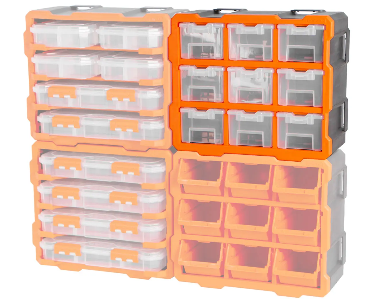 Univerzálny úložný modul pre efektívne a prehľadné usporiadanie drobných súčiastok v dielňach, garážach alebo domácnostiach.