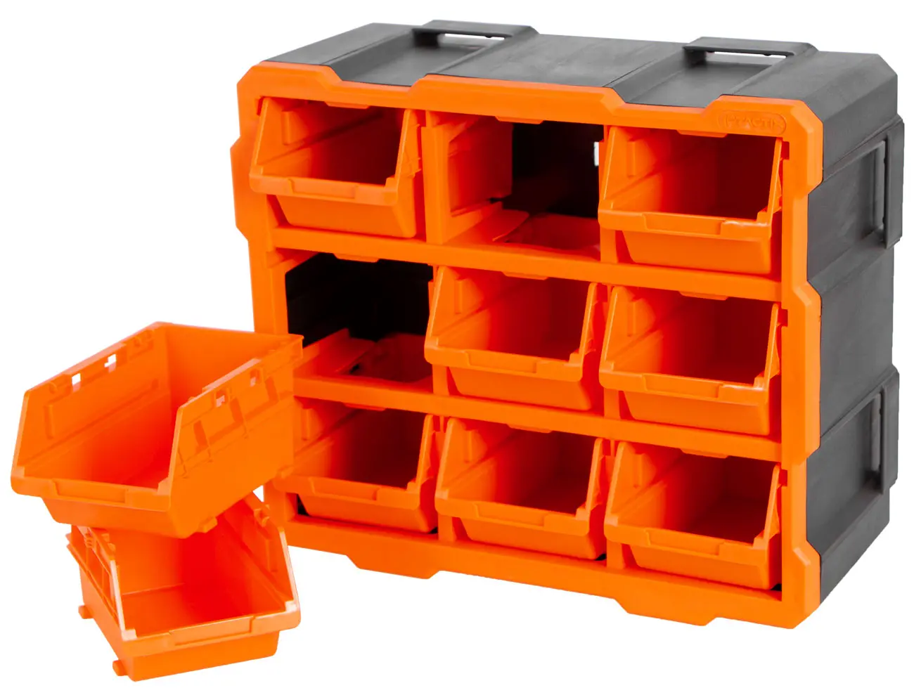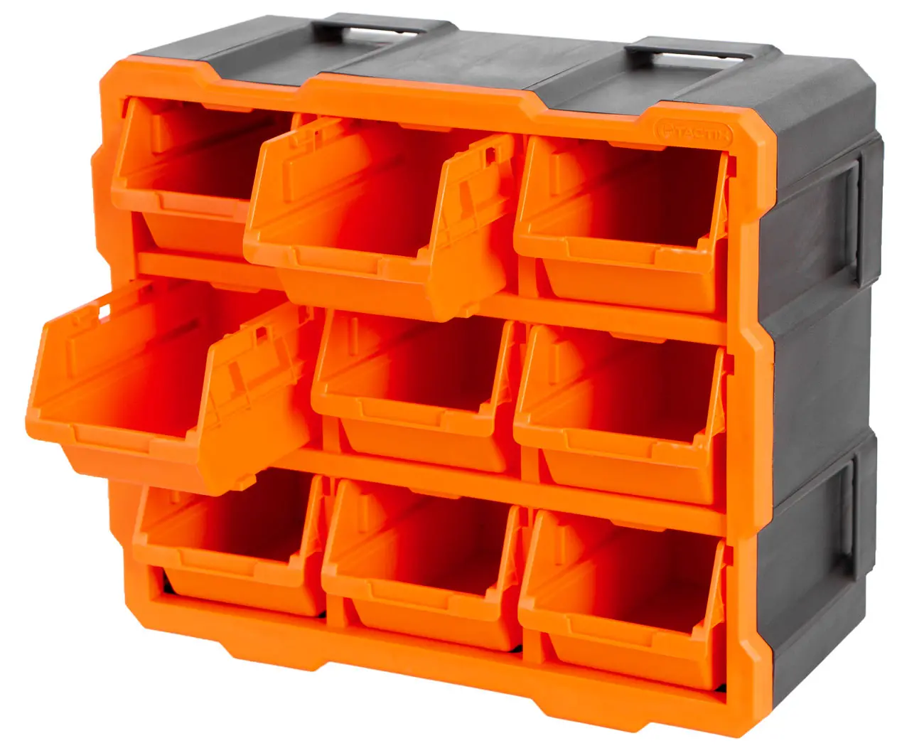 Organizér je vybavený 9 hlbokými, otvorenými zásobníkmi, ktoré možno z modulu ľahko vybrať, prenášať a stohovať. Každý zásobník je opatrený praktickým úchytom a miestom na nalepenie štítku.