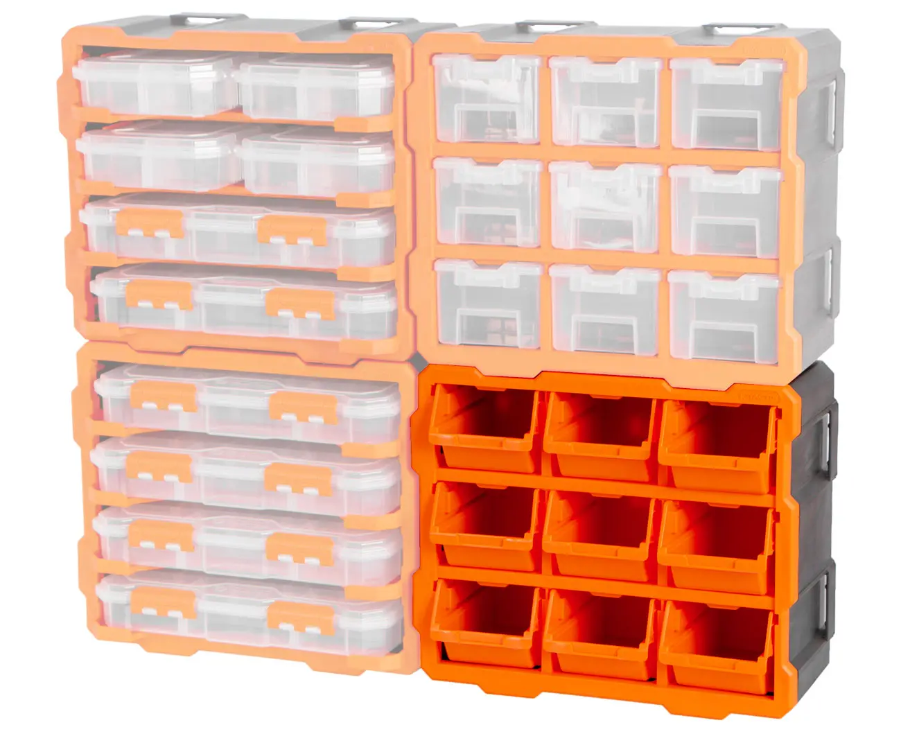 Univerzálny plastový organizér pre efektívne uloženie a triedenie drobného spojovacieho materiálu, príslušenstva a súčiastok v dielňach, garážach aj domácnostiach.
