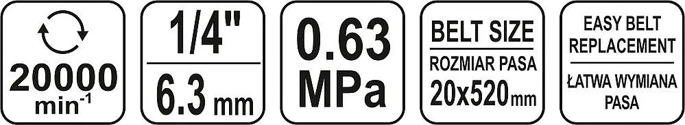 Pneumatická pásová brúska 20 x 520 mm (rozmer pásu) - YT-09742