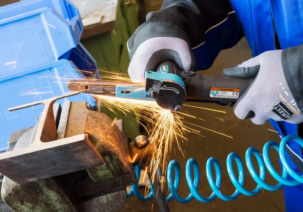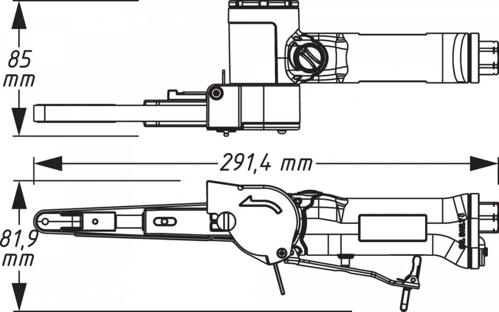 Výkonná pneumatická brúska s 10mm pásom pre presné brúsenie detailov a horšie dostupných miest.