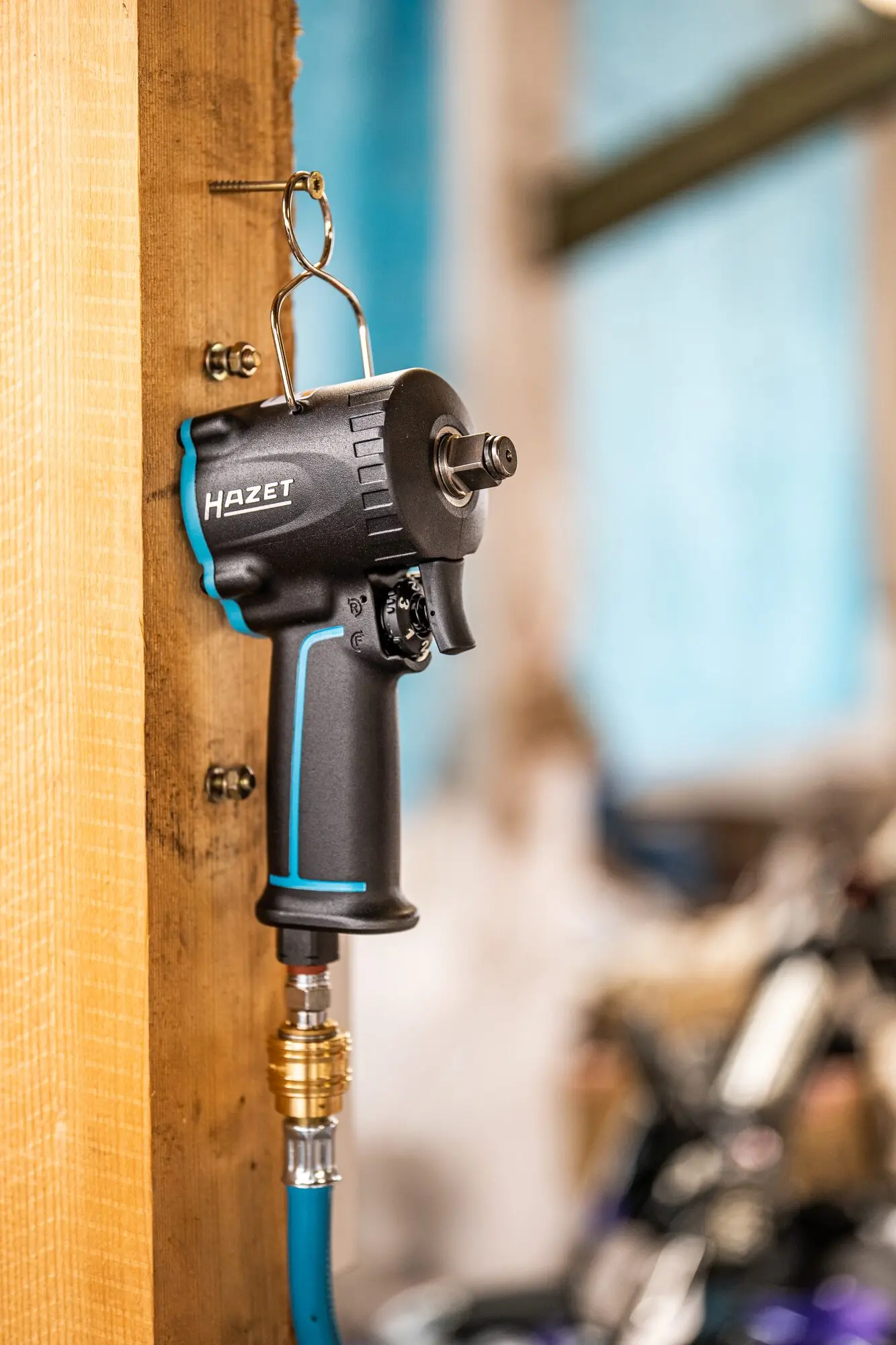 Pneumatický rázový uťahovák Hazet 9012M-1 bol vyvinutý pre prácu v stiesnených priestoroch, kam bežný rázový uťahovák nedostanete. Vďaka jeho konštrukcii sa ľahko ovláda jednou rukou ako pravákovi, tak i ľavákovi. Ďalšou veľkou výhodou sú nízke vibrácie a jeho hmotnosť, ktorá činí len 1,27 kg. I vďaka týmto vlastnostiam môžete pracovať s uťahovákom dlhšku dobu .