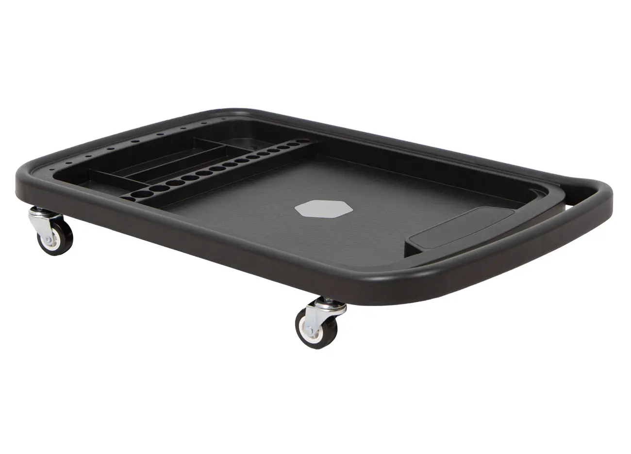 Oddeliteľná pracovná plocha na kolieskach sa dá používať samostatne, čo je výhodné napríklad pri práci pod autom.