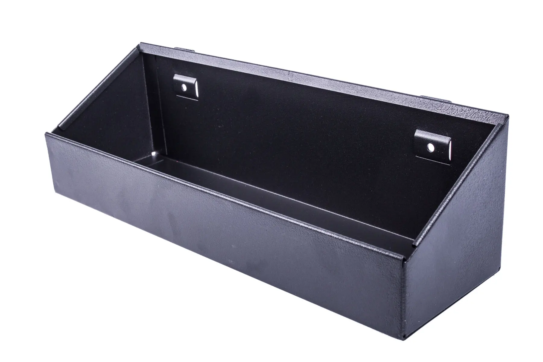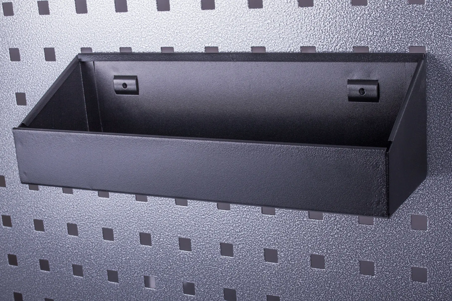 Polica na spreje je určená pre dierované dosky s roztečí 38 x 38 mm. Pripevnením na perforovaný panel je možné rozšíriť úložný priestor aj pre zostavy dielenského nábytku, dielenské vozíky s náradím aj bez náradia, pracovné stoly aj policové regály.