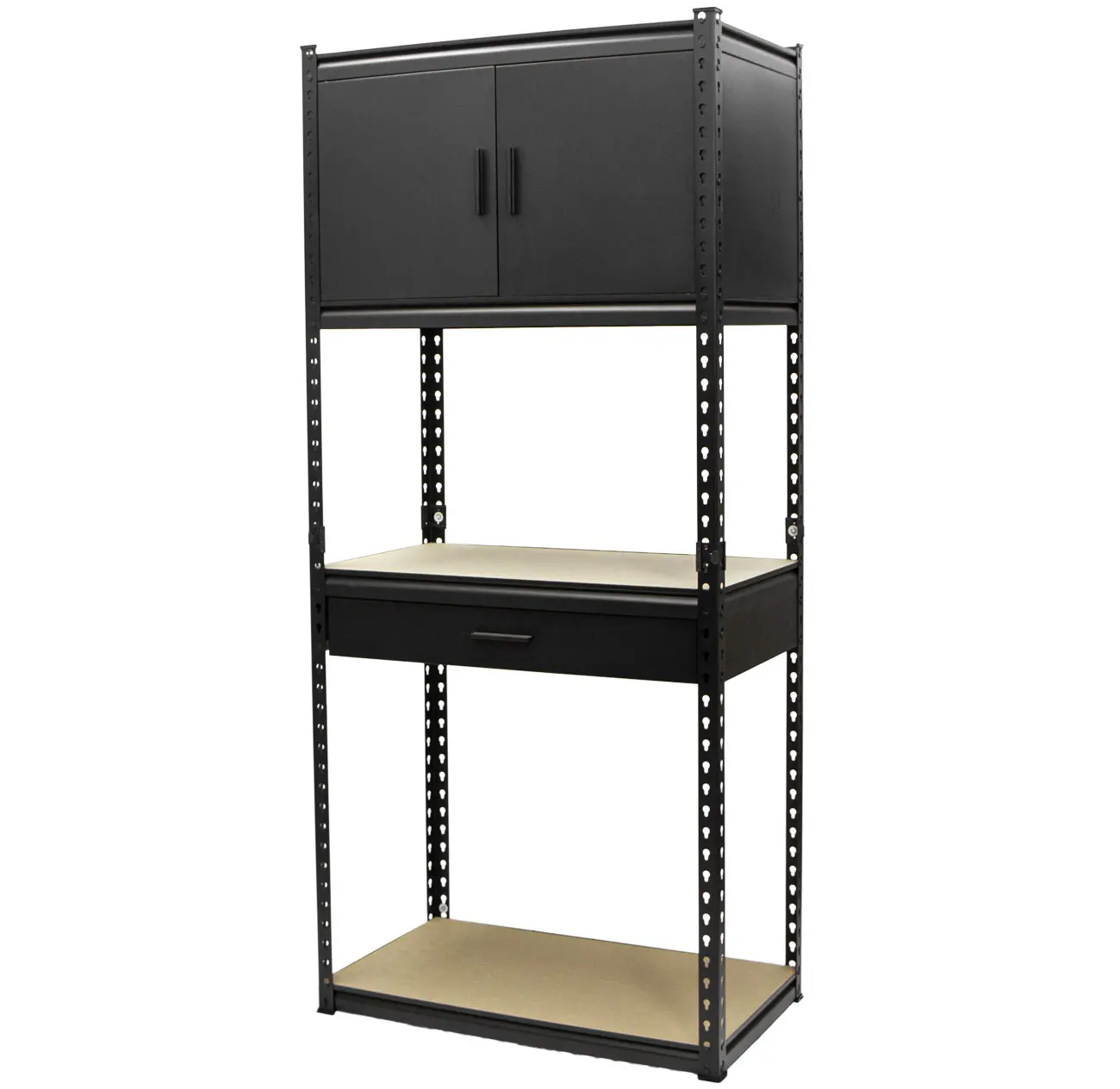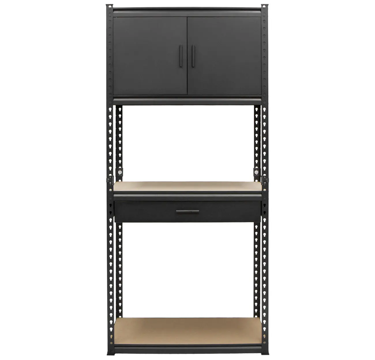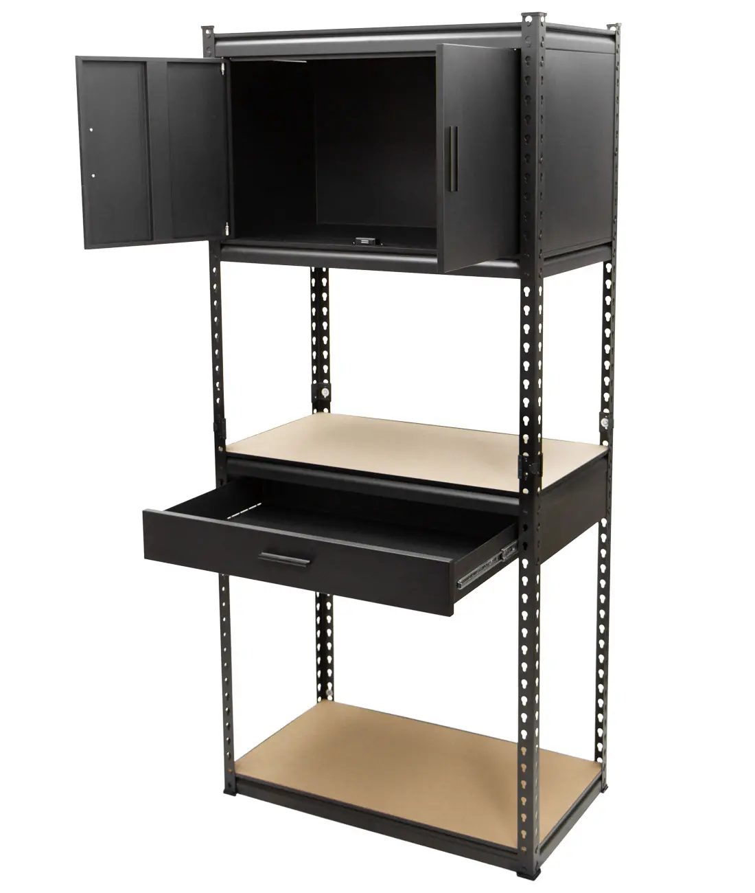 Vďaka kombinácii otvorených políc, uzamykateľného úložného priestoru a zásuvky poskytuje regál široké možnosti organizácie.
