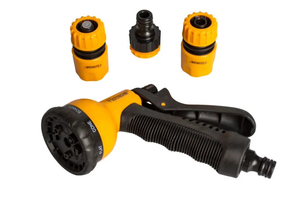 Postrekovacia pištoľ značky Hoteche s rýchlospojkou 1/2 "pre jednoduché a rýchle pripojenie záhradnej hadice. Jedná sa o neoceniteľného pomocníka na každej záhradke.