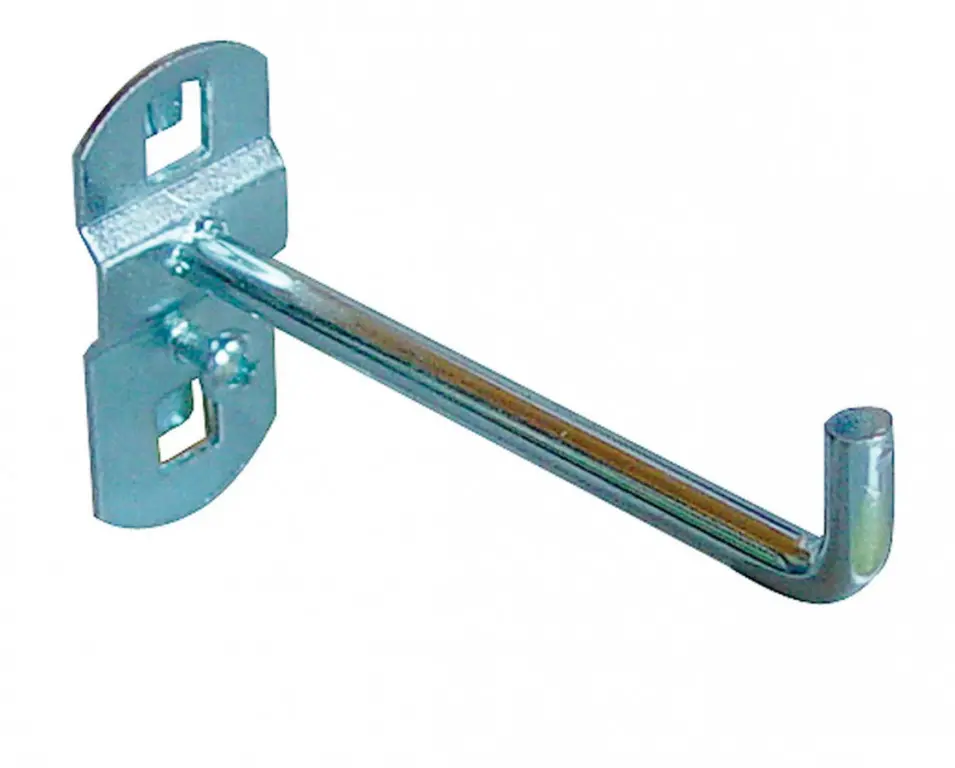 Pravouhlý hák dlhý 90 mm je určený pre dierované dosky s roztečí 38 x 38 mm. Pripevnením na perforovaný panel je možné rozšíriť úložný priestor aj pre zostavy dielenského nábytku, dielenské vozíky s náradím aj bez náradia, pracovné stoly aj policové regály.