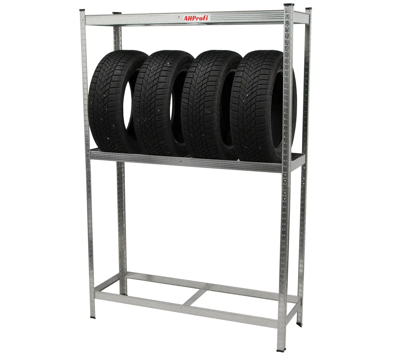 Praktický policový regál pre jednoduché uskladnenie pneumatík osobných vozidiel rôznych rozmerov.