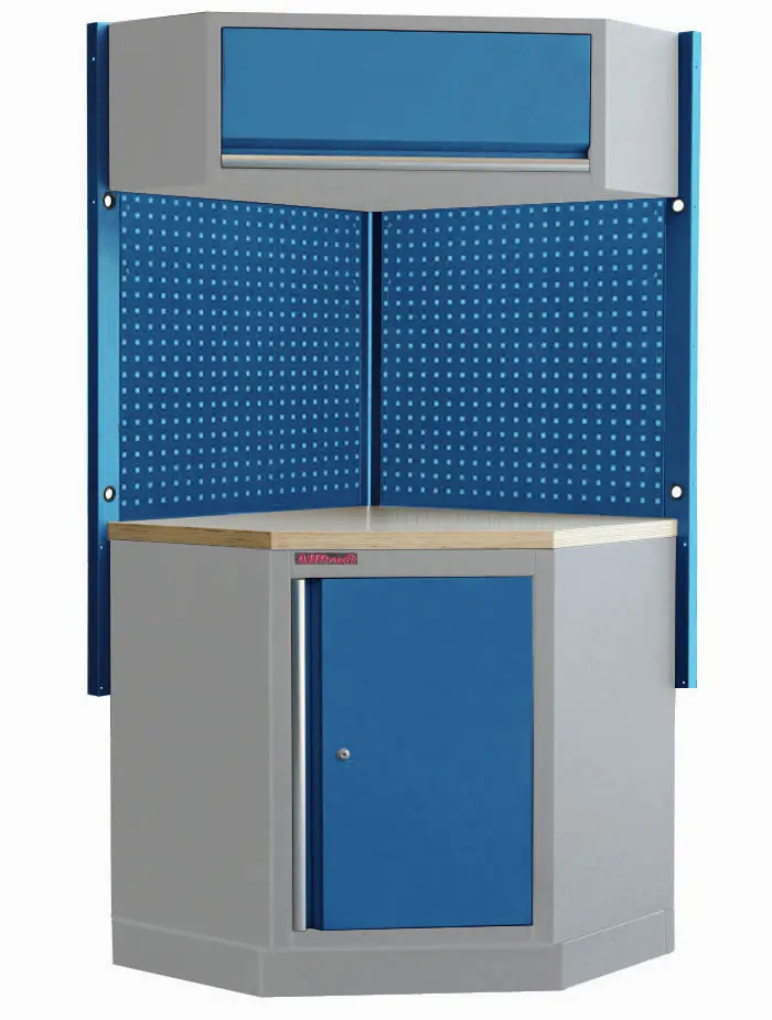 Dielenský nábytok PROFI BLUE s drevenou doskou zaujme moderným a profesionálnym vzhľadom. Kombinácia modrej RAL 5023 a šedej RAL 7035 sa bude vynímať v každej garáži aj dielni. Zostava nábytku v sebe skrýva dostatočné množstvo úložného priestoru pre vaše náradie, autotechniku aj dielenské vybavenie. V kombinácii s robustnou pracovnou doskou získate multifunkčnú stenu, s ktorou vám práca pôjde od ruky vo všetkých smeroch. Jednotlivé komponenty sú plne konfigurovateľné, zostavu je možné podľa vašich potrieb rozšíriť o ďalšie skrine, regály aj pracovné stoly.Zostava nábytku MTGS1302