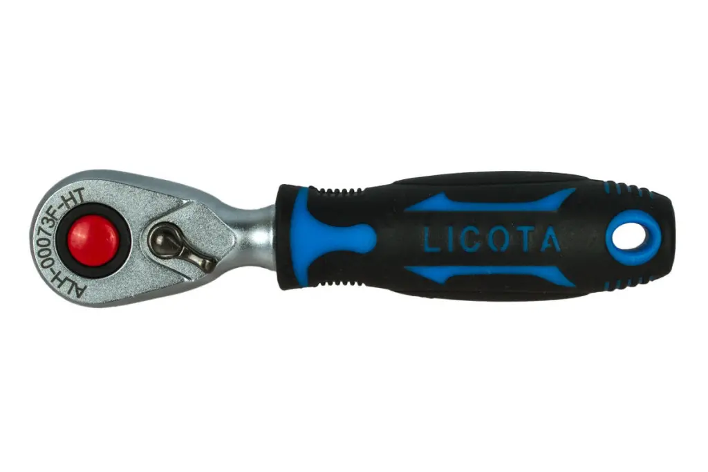 Kompaktná rovná račňa značky Licota s hlavicou 3/8" a dĺžkou 141 mm je navrhnutá na presnú prácu v úzkych a ťažko dostupných miestach.