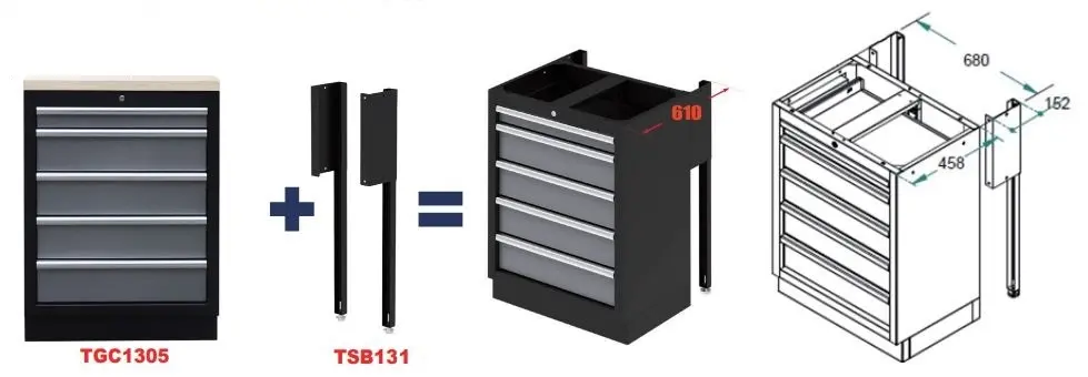 Rozšírte svoje možnosti vďaka predlžovacím stĺpikom TSB131, ktoré umožňujú zväčšiť hĺbku vašej dielenskej zostavy.