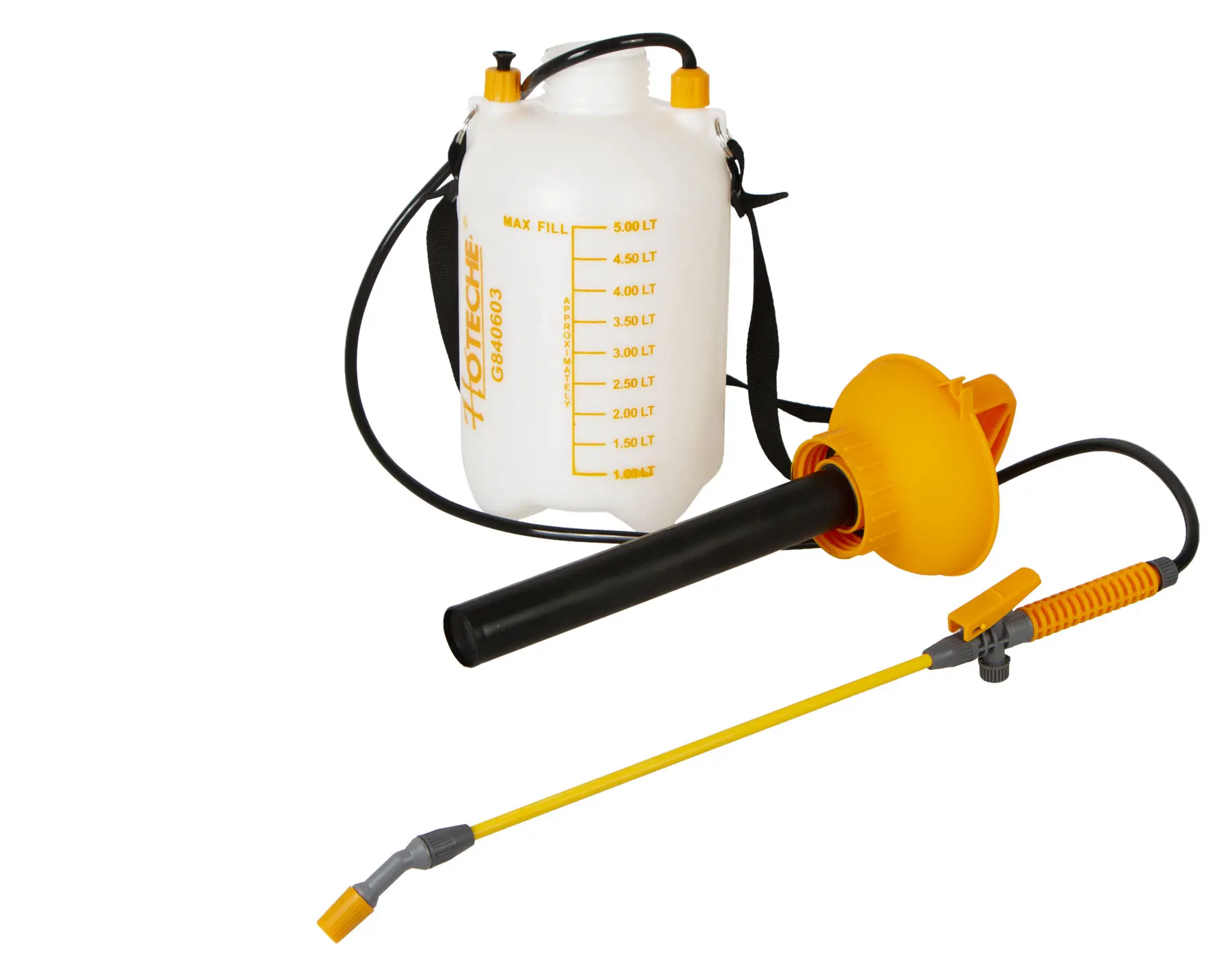 S plastovou tlakovou nádobou s objemom 5 l s postrekovačom zvládnete ošetriť aj väčšiu plochu alebo väčšie množstvo kríkov alebo stromčekov.