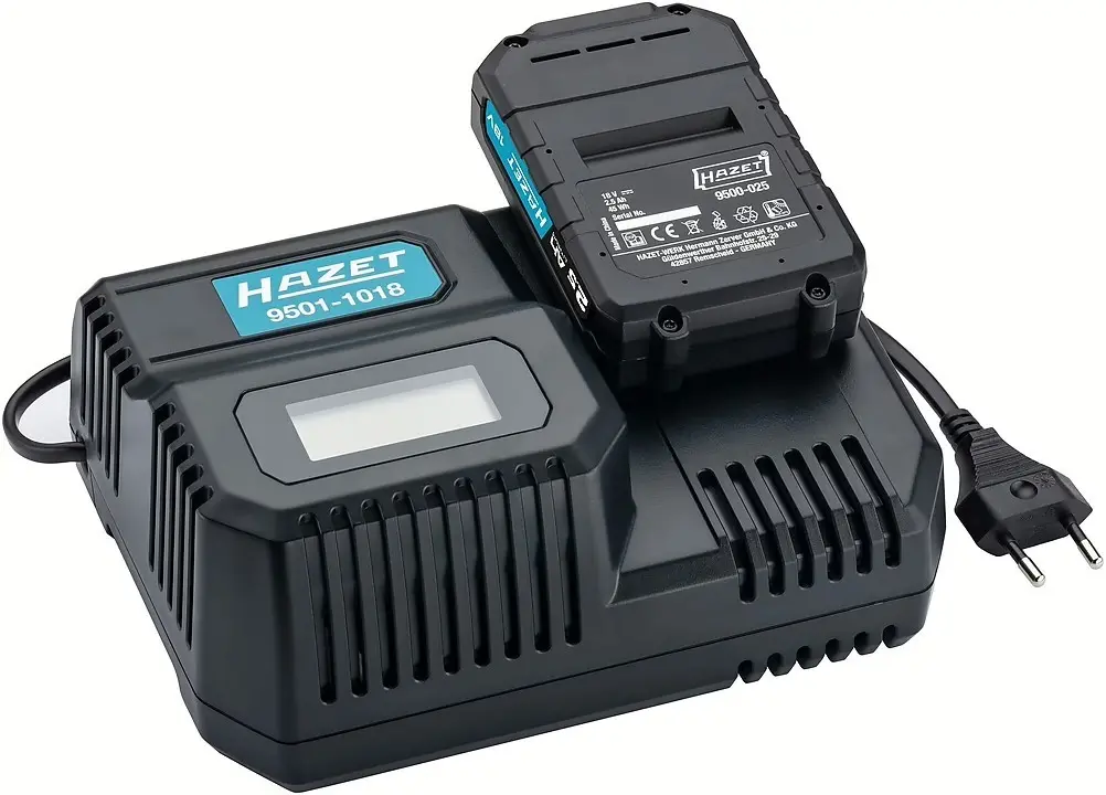 Výkonná rýchlonabíjačka pre Li-Ion akumulátory HAZET 9500-025 a 9500-05, vhodná na použitie v profesionálnych dielňach aj na montážach, kde je dôležitá rýchlosť a spoľahlivosť nabíjania.