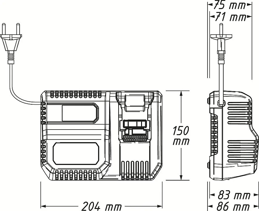 Veľký LCD displej zobrazuje aktuálny stav nabitia aj diagnostiku batérie pomocou prehľadnej signalizácie. Pripojenie je zaistené pomocou 230V kábla s eurozástrčkou.