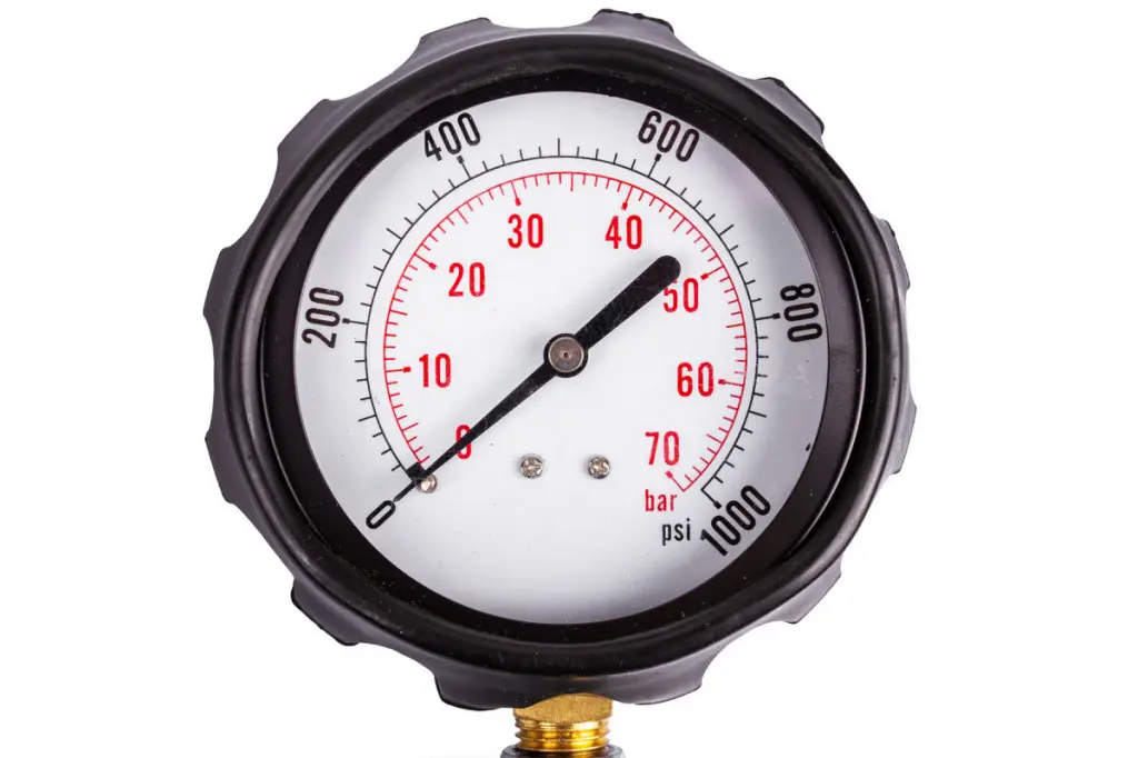 Manometer s max. 70 bar s rýchlospojkou pre pripojenie adaptérov a odvzdušňovacieho ventilu.
