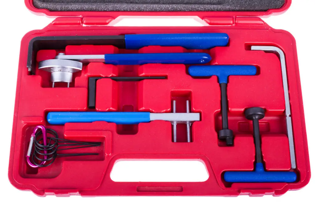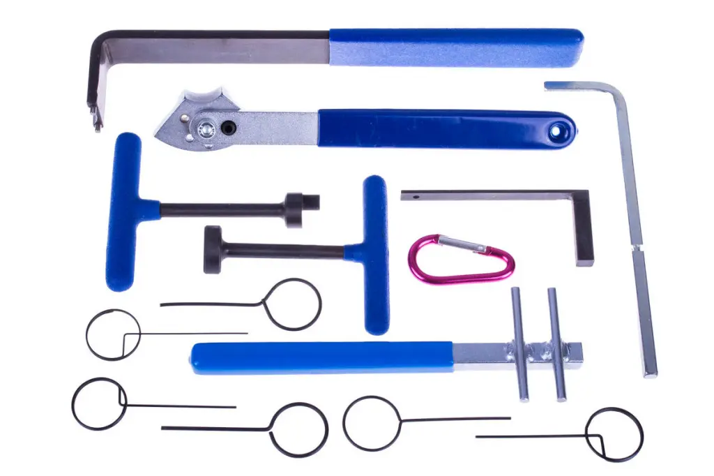 Komplexná sada napinákov a kľúčov požadovaných k výmene rozvodových remeňov u väčšiny bežných ben...