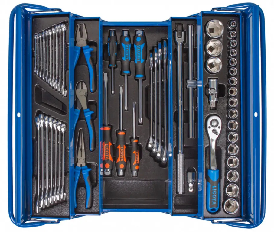Sada profesionálneho náradia 1/2" LICOTA v kovovom boxe, 57 kusov, obsahuje nástrčné a kombinovan...