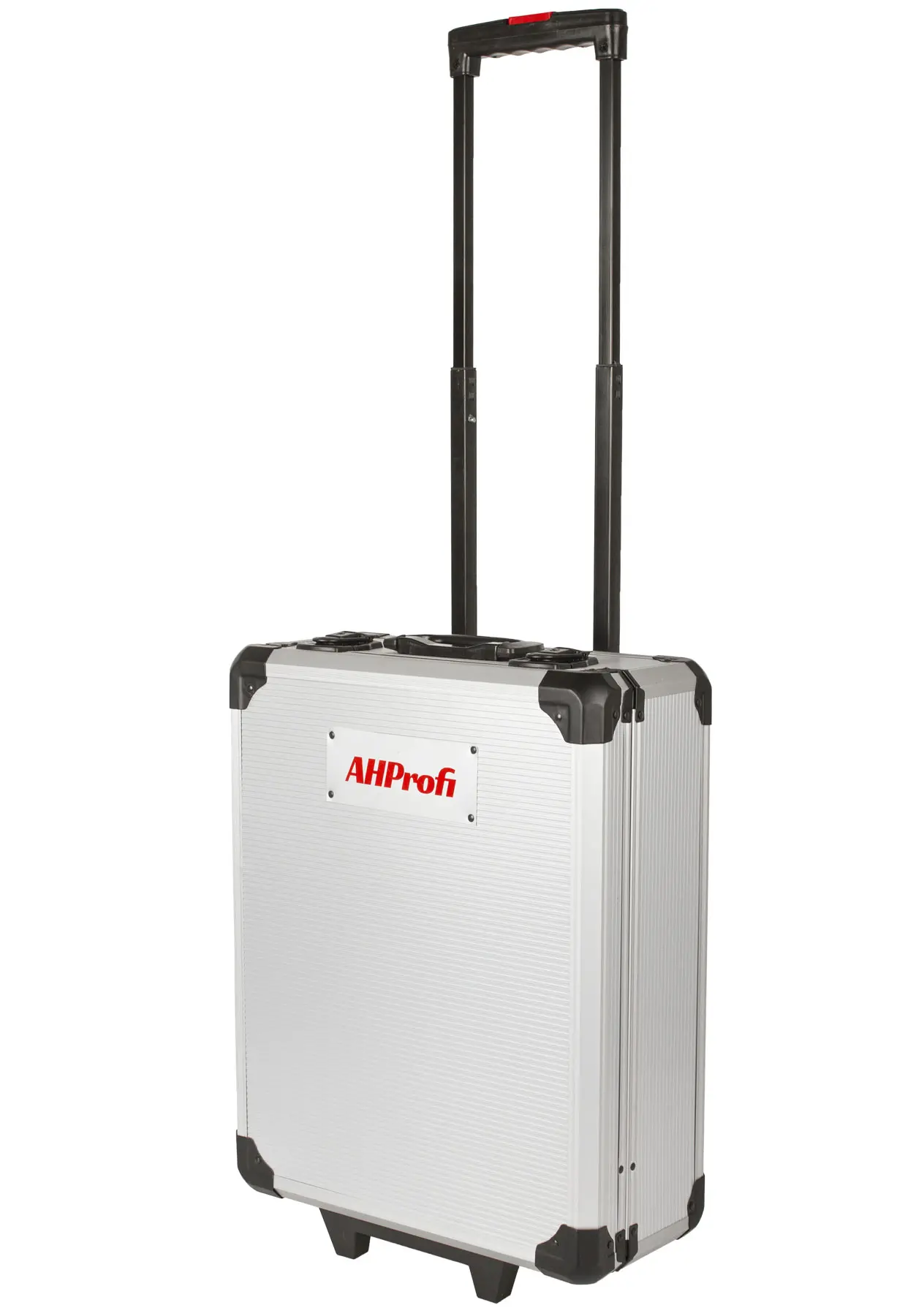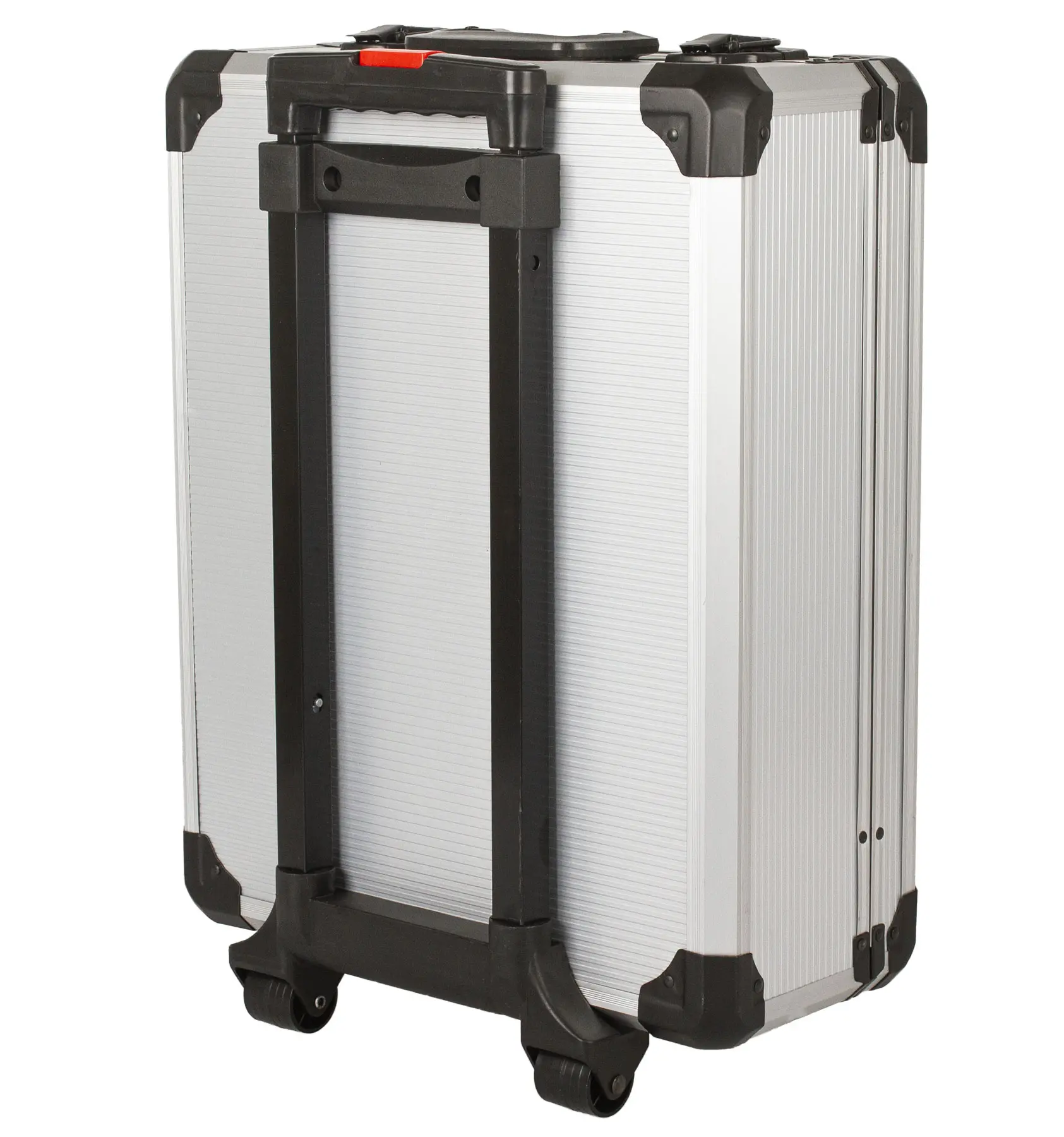 Pevný hliníkový kufor na kolieskach s teleskopickou rukoväťou uľahčuje transport po pevnom povrchu, napríklad pri prevoze autom. Konštrukcia je spevnená kovovými rohmi, spodná časť je osadená 2 kovovými prackami so zámkom (2 kľúče sú súčasťou balenia).
