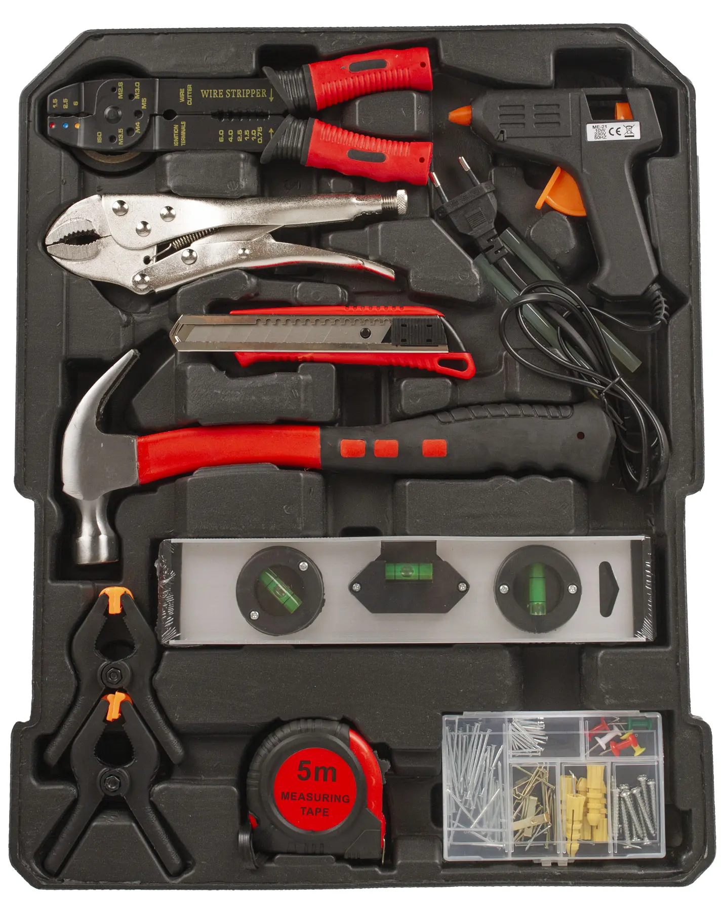 Praktická sada ručného náradia určená na bežné domáce a hobby použitie v dielni, garáži, na chate alebo pri drobných montážach. Obsahuje skrutkovače, kľúče, kliešte, kladivo aj gola sadu – teda výbavu, ktorú využijete pri každodenných opravách a údržbe domácnosti.