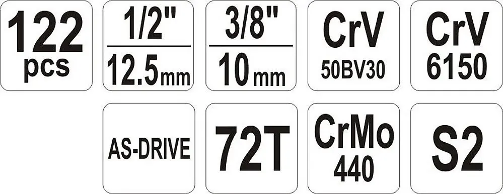 Sada náradia s Golou 1/2" a 1/4", 122 dielov - YT-38901