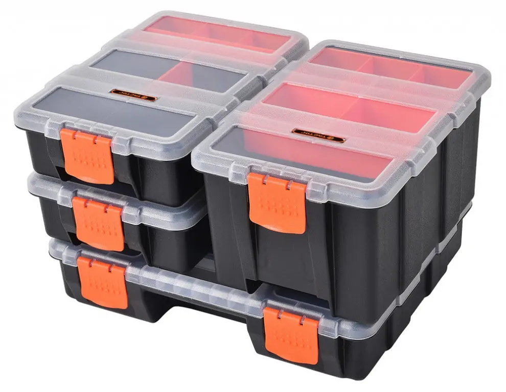 Značka Tactix predstavuje plastovú sadu organizérov pre drobný materiál ako sú napríklad skrutky.