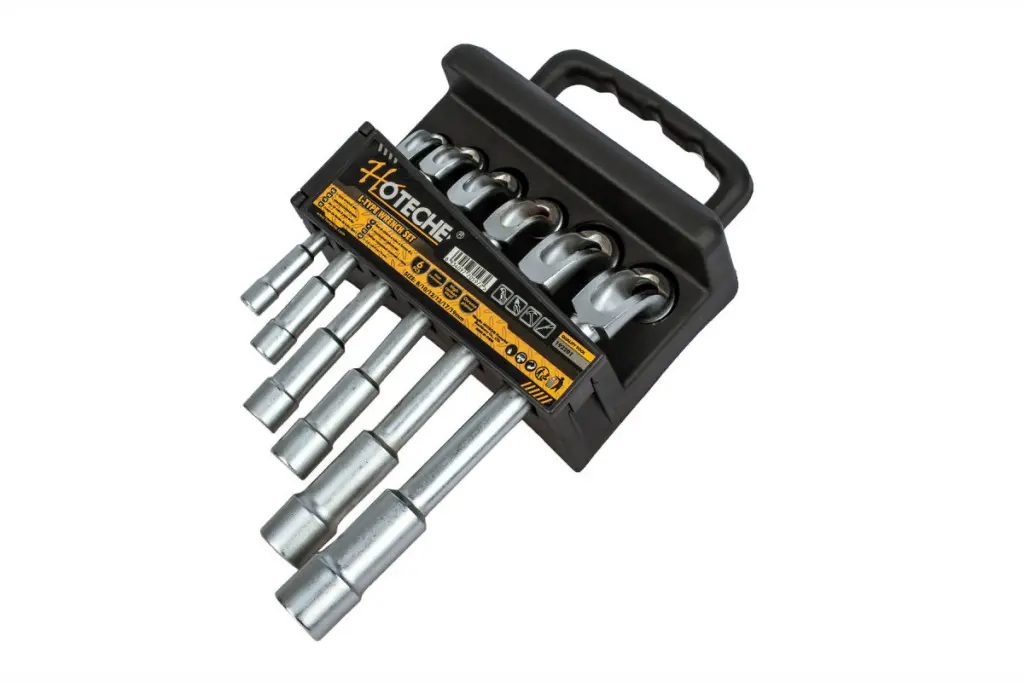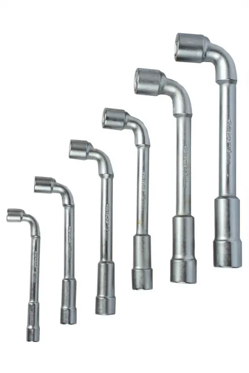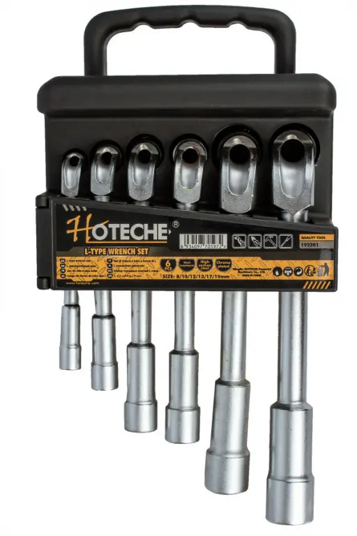 Sada šiestich trubkových kľúčov v tvare L vyrábané značkou Hoteche. Veľkosti týchto kľúčov sú 8, 10, 12, 13, 17 a 19 mm. Dĺžka je od 120 - 215 mm s šesťhranným nástrčným kľúčom.