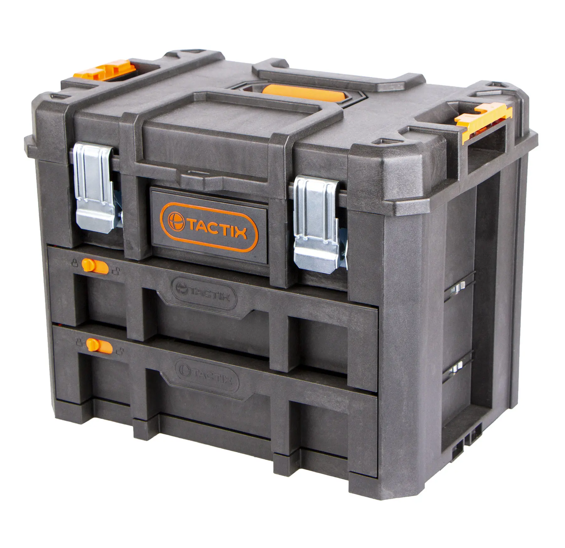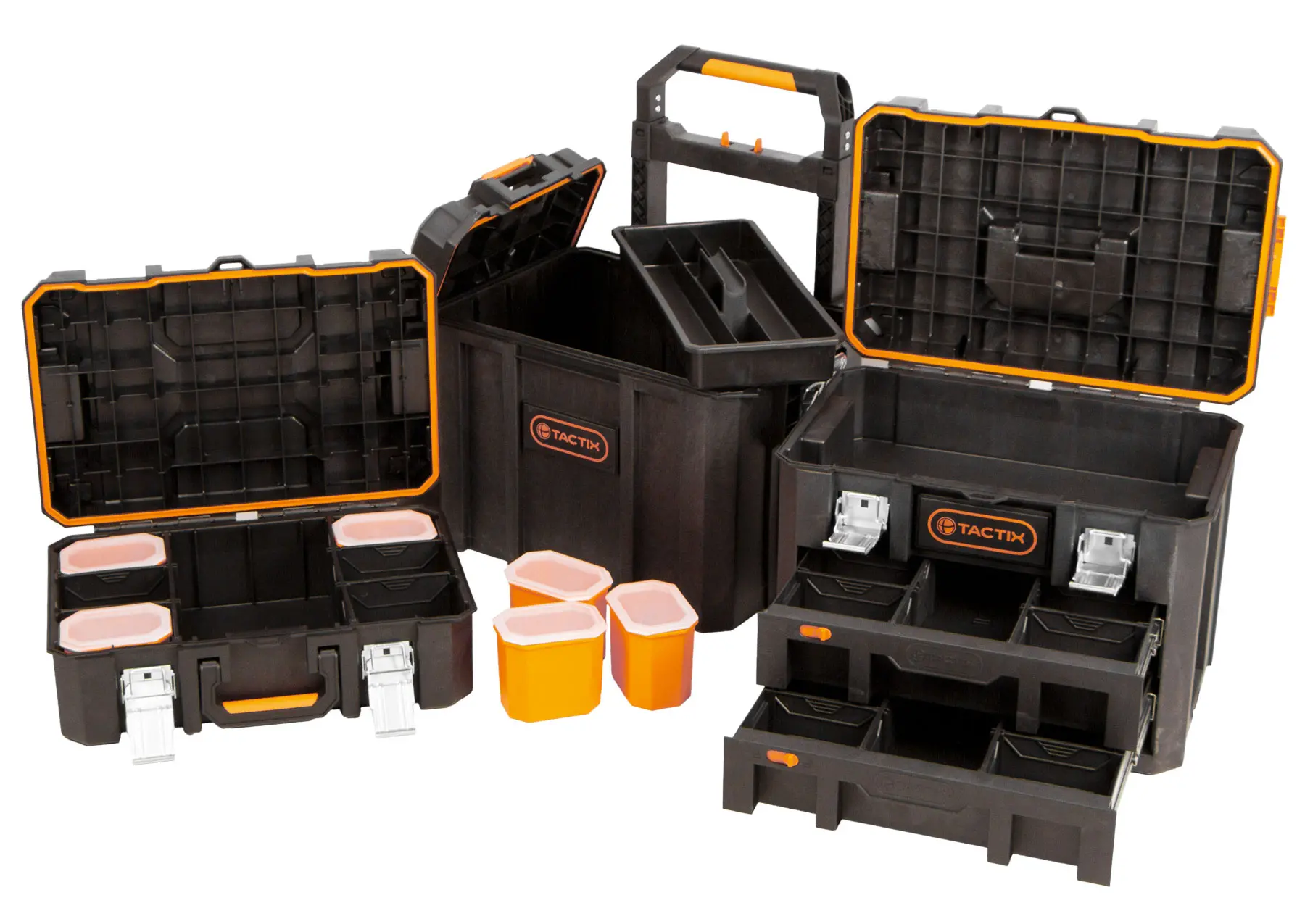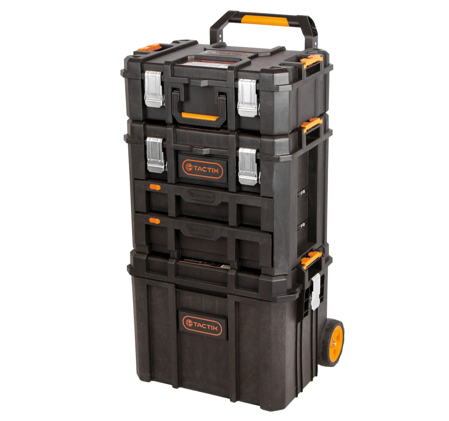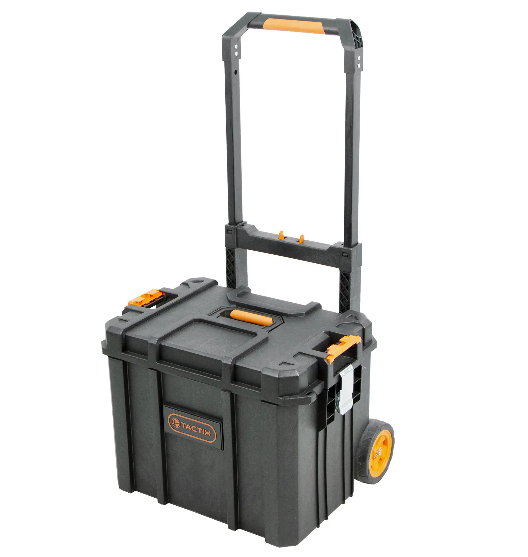 Hlavnou výhodou kufrov od značky Tactix je ich variabilita úložných priestorov, vodotesnosť a ľahká manipulácia celej sady vďaka madlu a kolieskam.