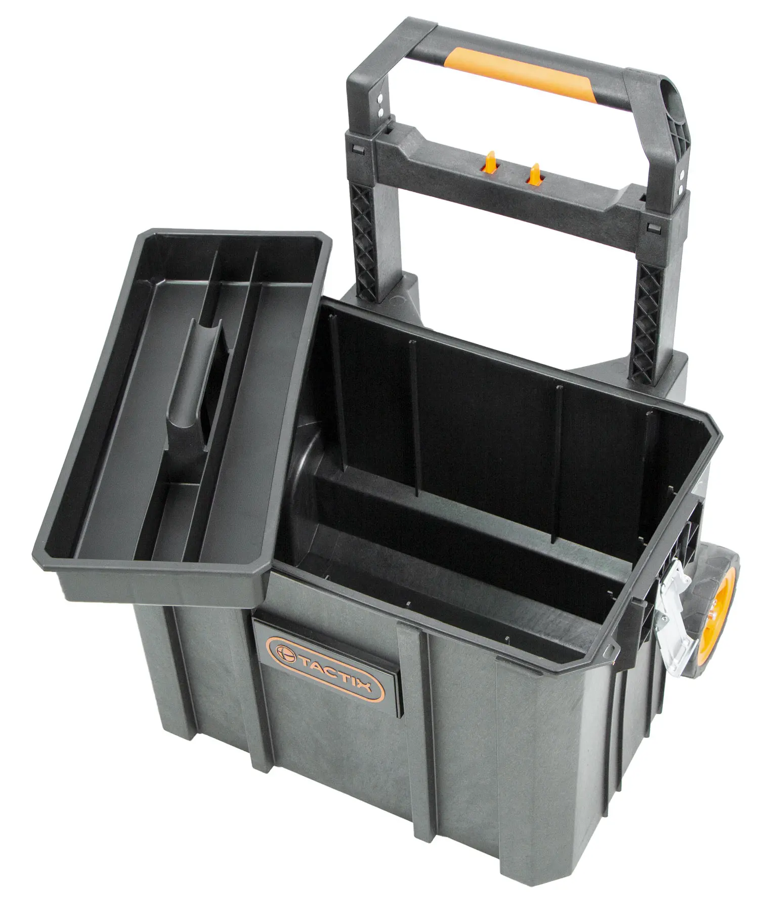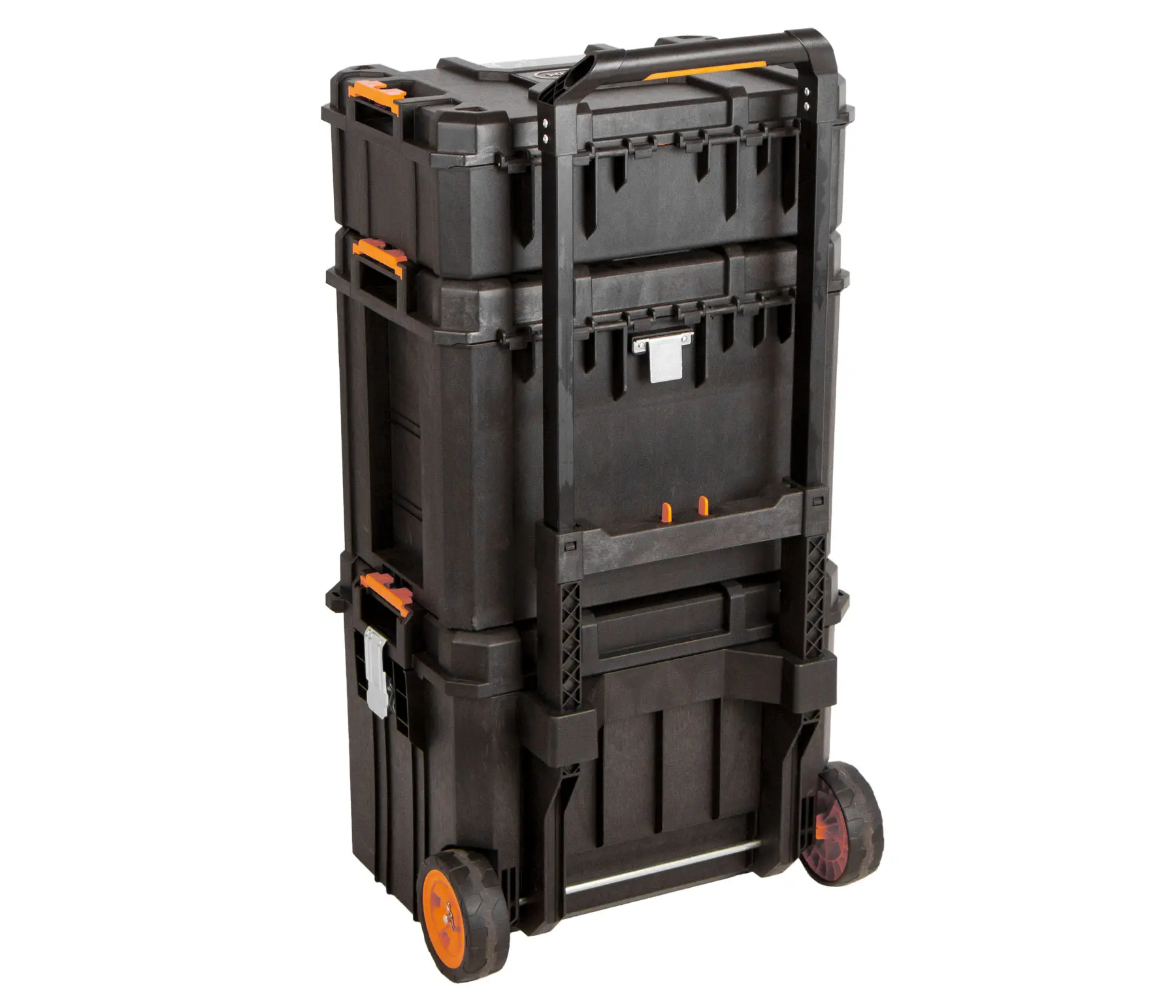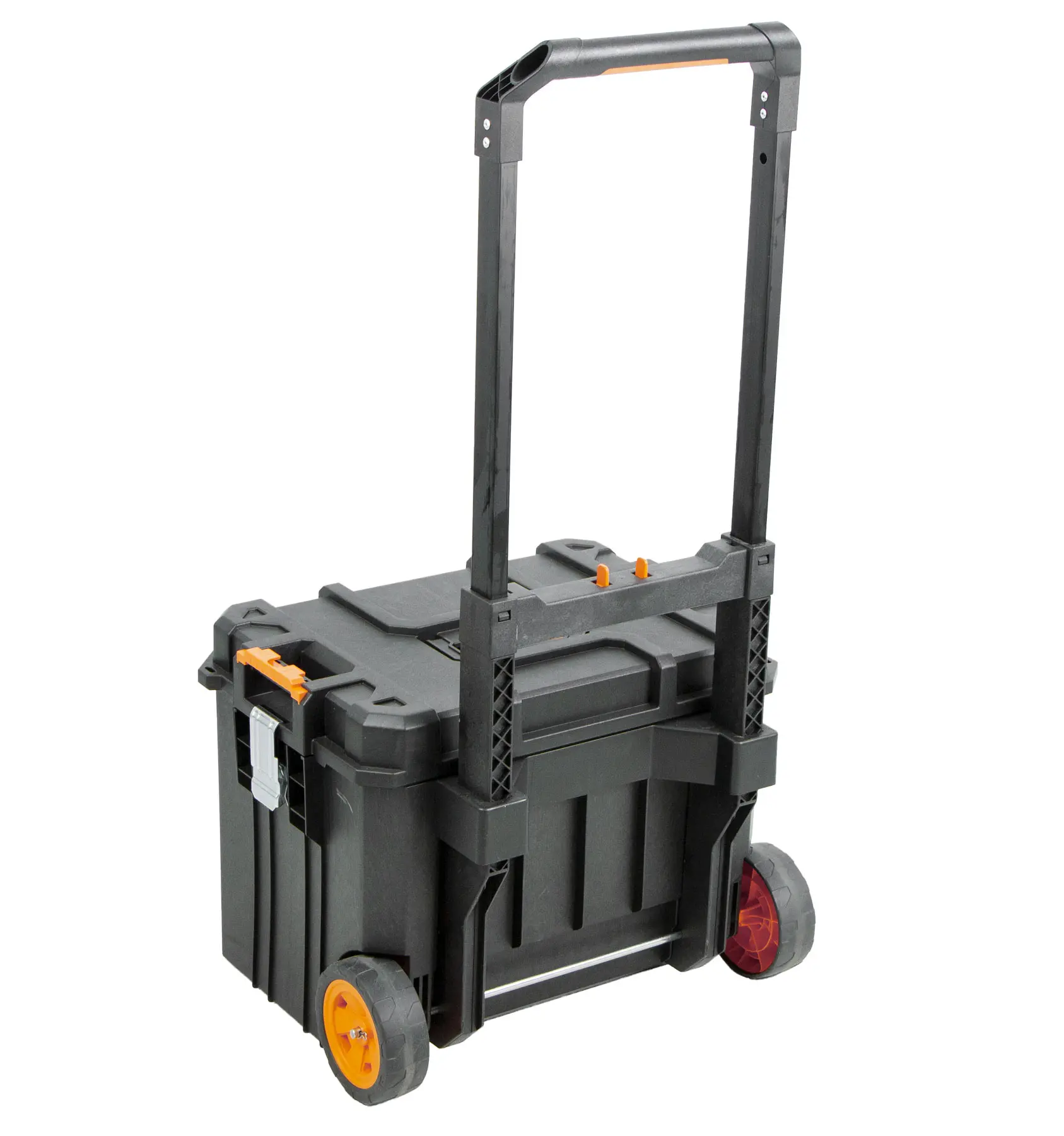 • Veľký kufor s kolieskami, ktorý má veľký úložný priestor a odnímateľnú prepravku pre drobnejšie náradie