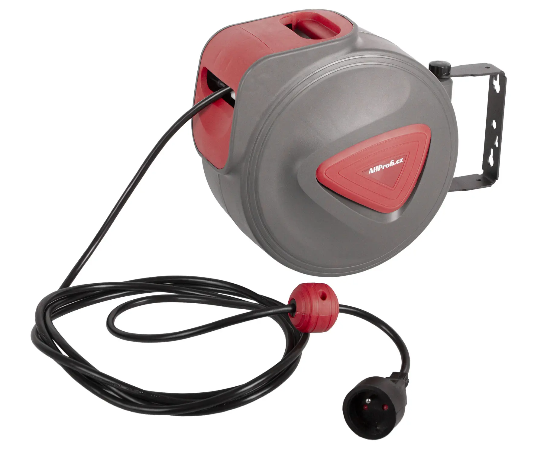 Kvalitný samonavíjací bubon s 12 m káblom, vhodný do dielne, garáže i na záhradu, otočný držiak p...