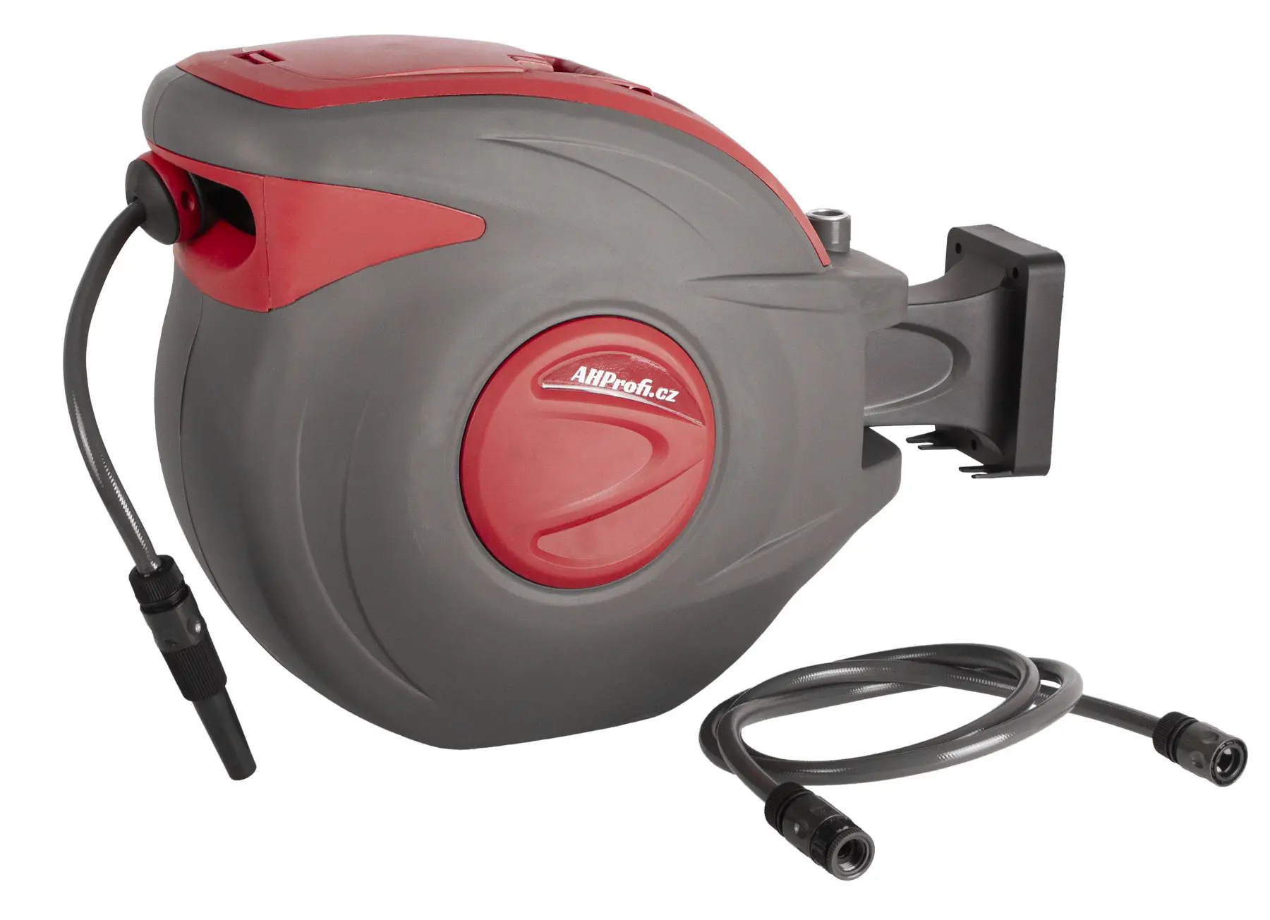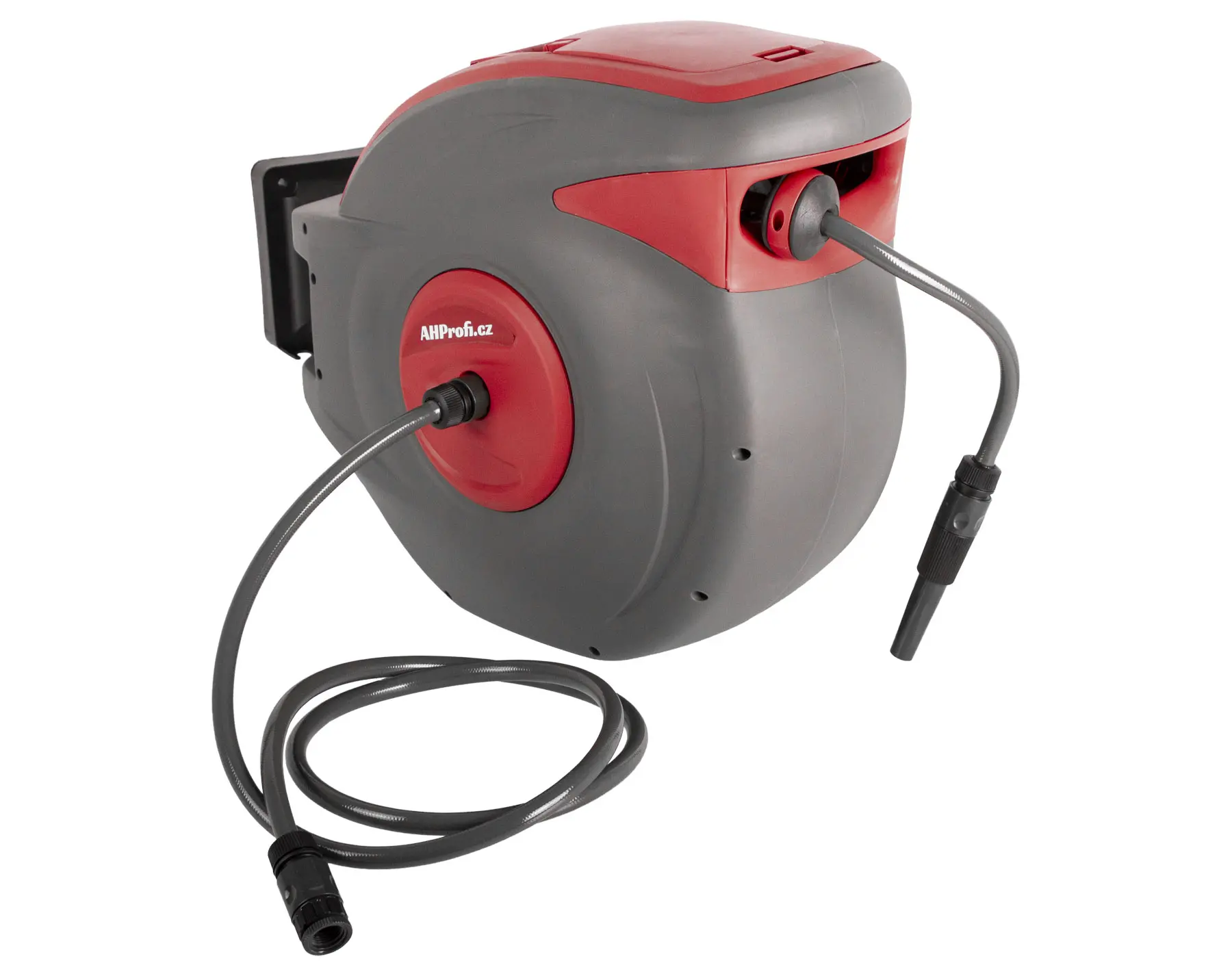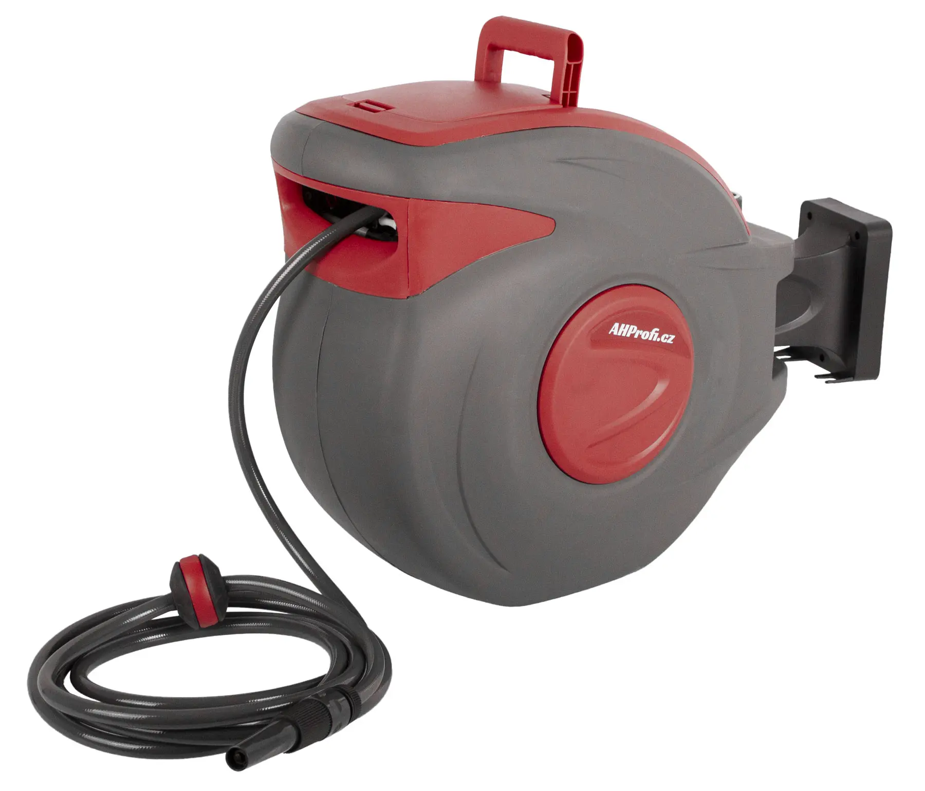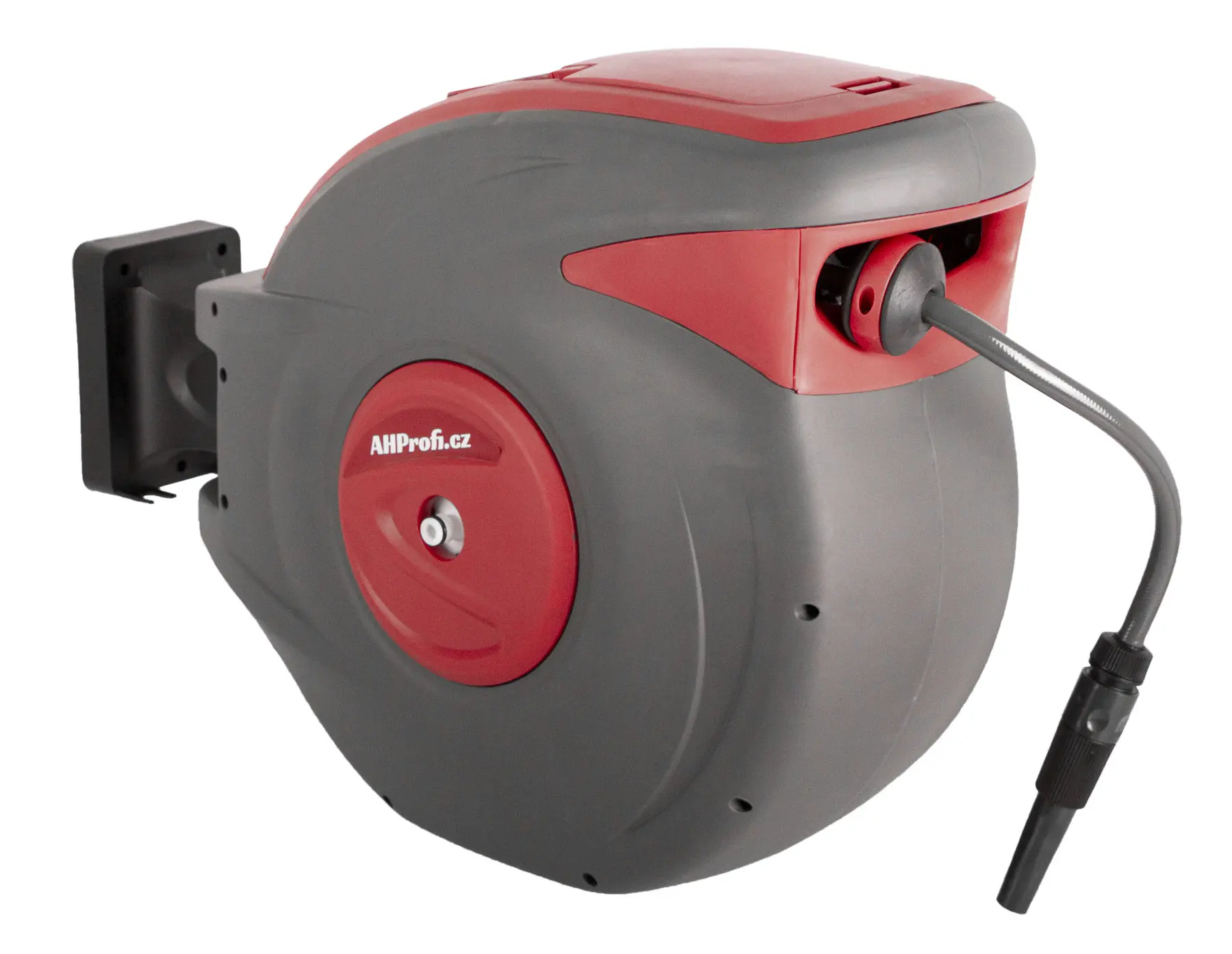 Samonavíjací bubon z odolného plastu s 30 metrovou vysokotlakovou hadicou na vodu, hadica ukončen...