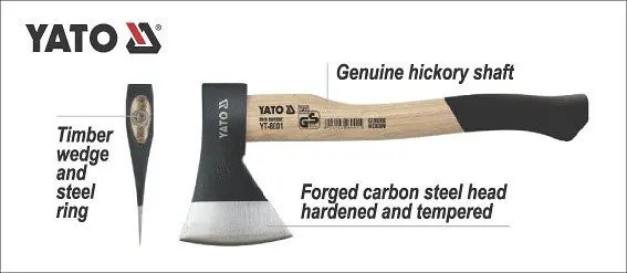 Hlava a její ostří bylo precizně vykováno z kvalitní uhlíkaté oceli, která byla po zpracování kalená a temperovaná pro ještě lepší vlastnosti. Proti vyklání je opatřena dřevěným klínem spolu s ocelovým kroužkem.