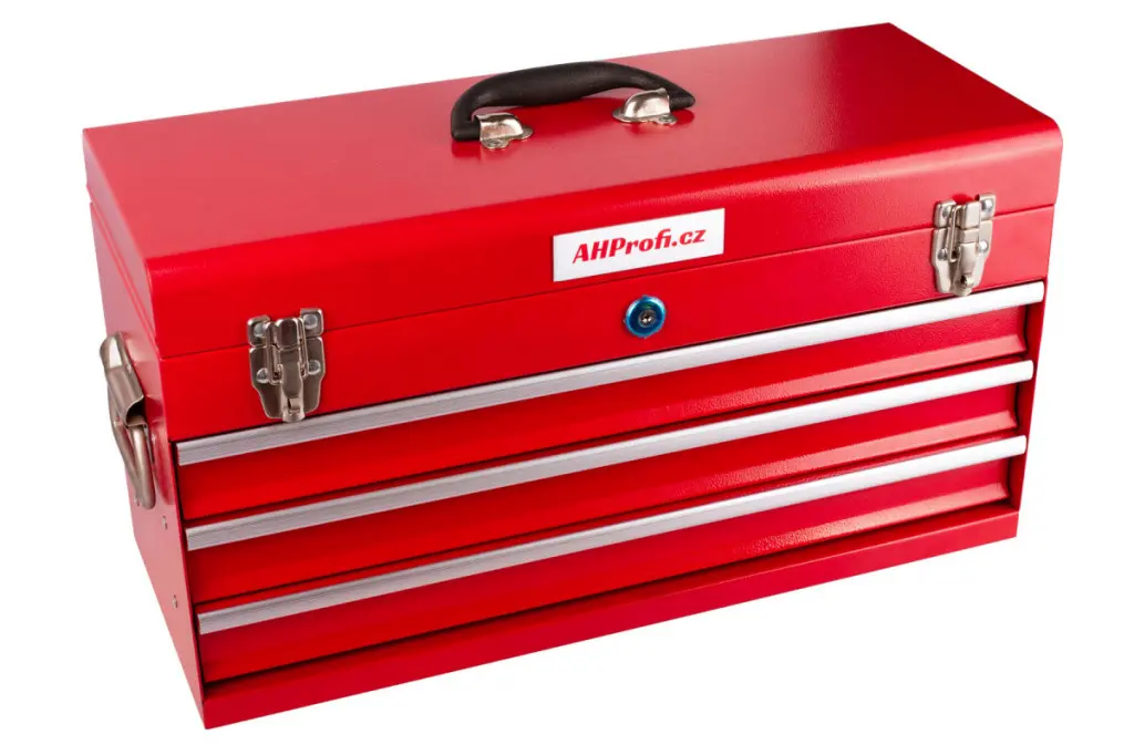 Prenosná skrinka na náradí s 3 zásuvkami a uzamykateľným horným výklopom. Rozmery: 560 x 290 x 23...