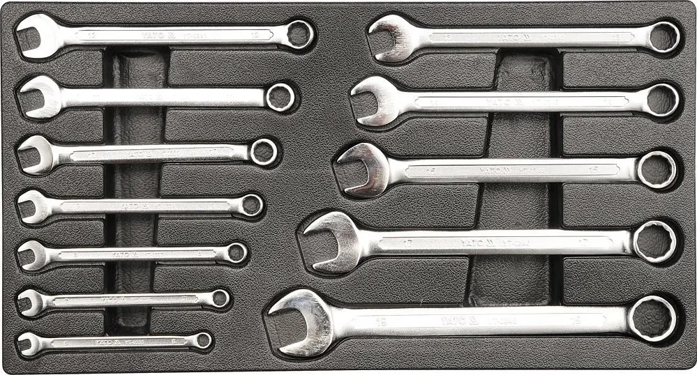 • Sadu stranových kľúčov 6, 7, 8, 9, 10, 11, 12, 13, 14, 15, 17, 19 mm; CrV;
