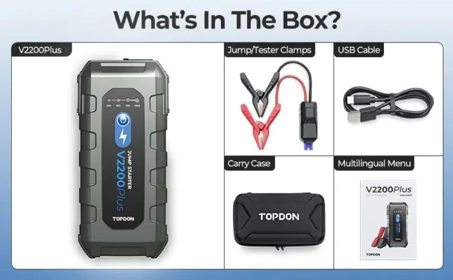 Štartovací zdroj a tester batérií 2v1 TOPDON V2200Plus, 16000 mAh