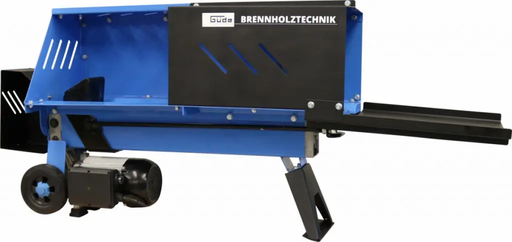 Konstrukce: ocelový rám se štípacím klínem, ochranné kryty, transportní kola.