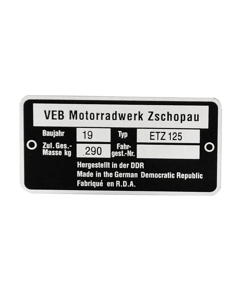 Typový štítok MZ ETZ 125