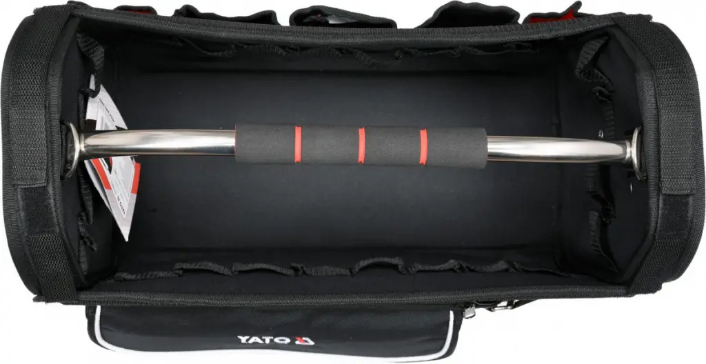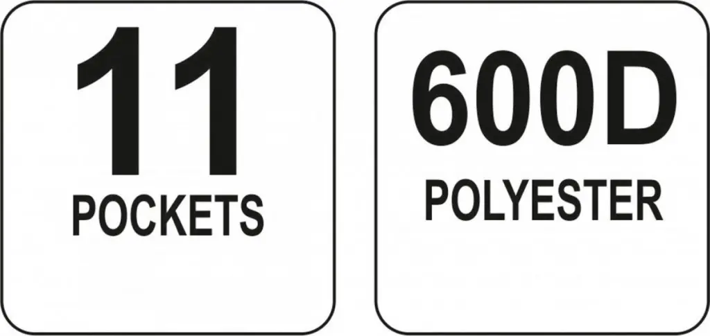 Praktická otevřená taška na nářadí zhotovená z odolného polyesteru 600D se zesíleným dnem odolným proti vlhkosti. Taška je vybavena 11 kapsami pro nejrůznější použití. Rukojeť je zhotovena z oceli a je uzpůsobena pro držení tvaru tašky i při přenášení těžkých nákladů. Taška je navíc opatřena popruhem zvyšujícím komfort a usnadňujícím přepravu.