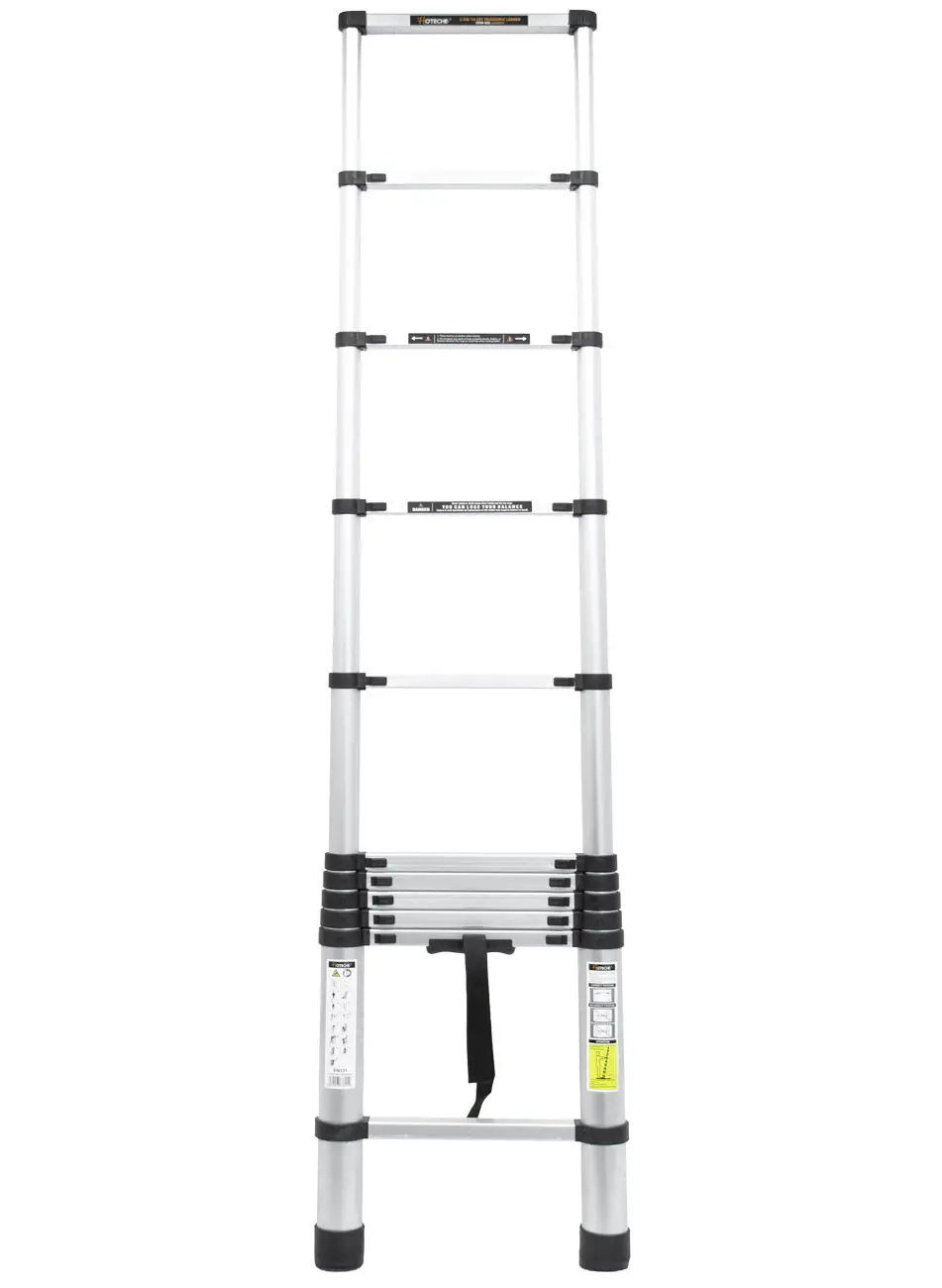 Hliníkový teleskopický rebrík s dĺžkou 3,2 m na práce v interiéri aj exteriéri a širokú škálu úloh, ako je maľovanie, čistenie okien alebo montážne práce.
