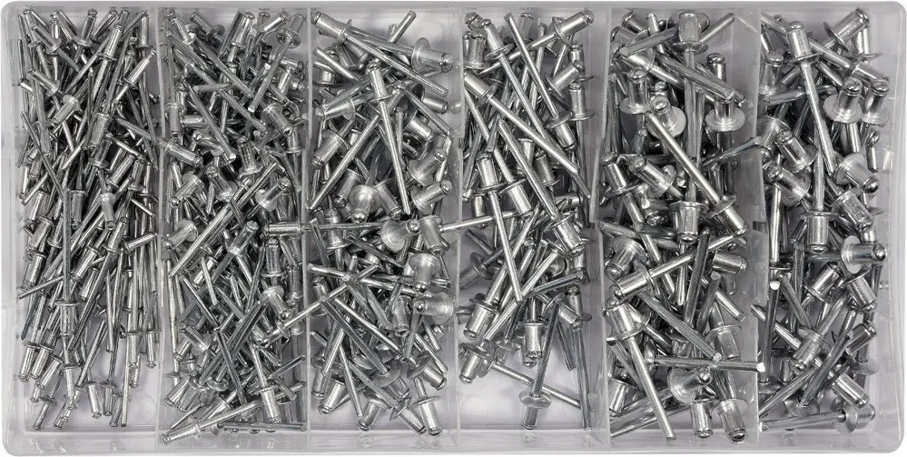 Sada trhacích hliníkových nitov. 400 kusov nitov o rozmeroch: 2,4; 3,2; 4 a 4,8 mm v balení po 10...