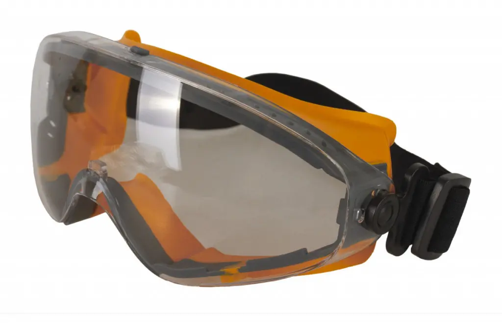 Uzavrené ochranné okuliare s veľkým zorným polom, ochrannou vrstvou proti zahmlievaniu, proti poš...