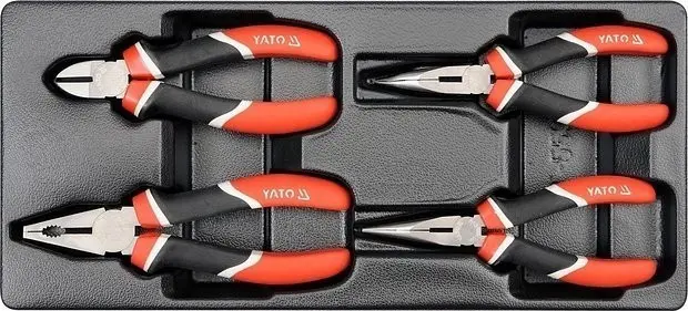 Sada priemyselných klieští YATO v plastovej výplni zásuviek, 4 kusy, CrV oceľ, obsahuje kombinova...