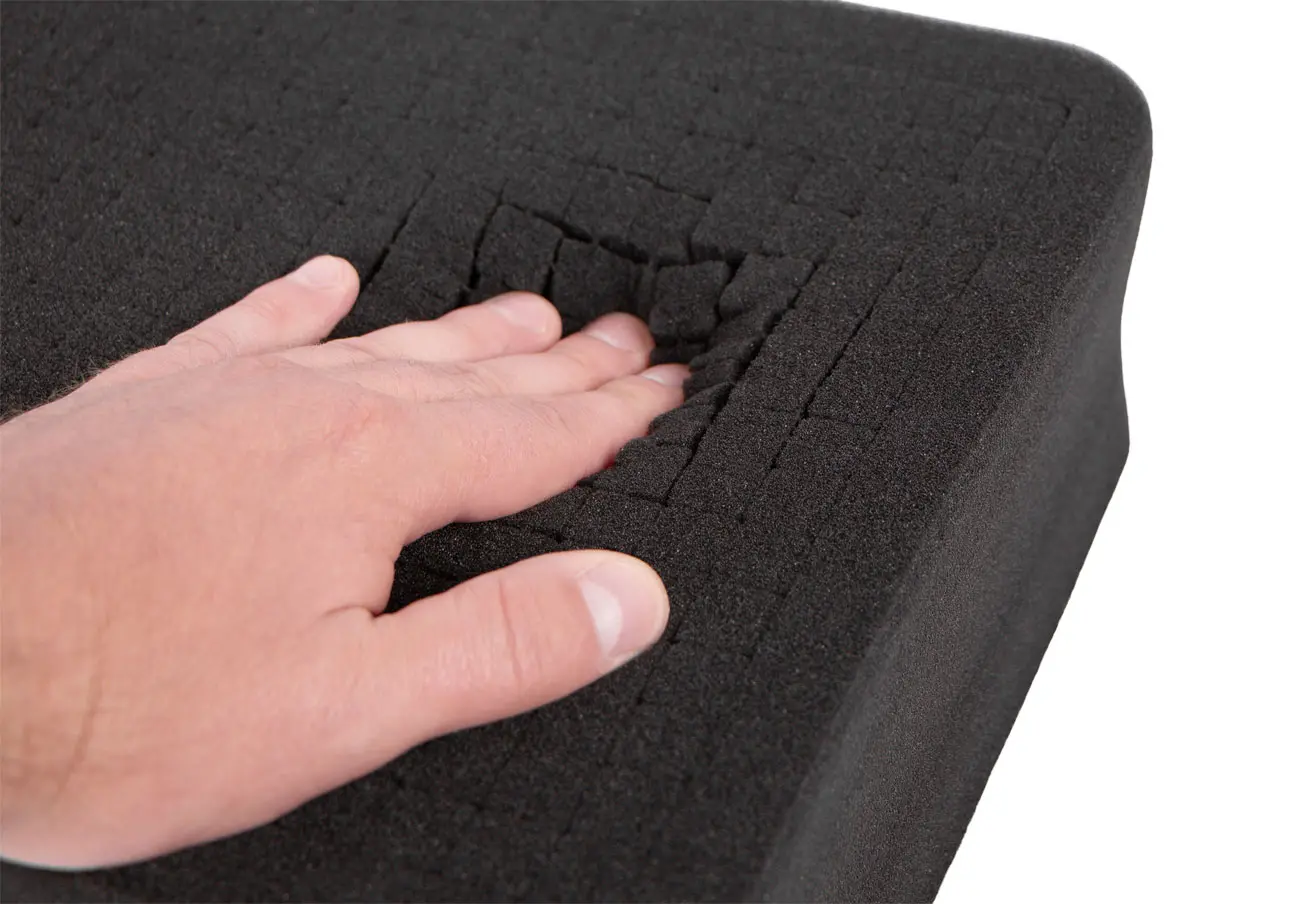 Kufor je vybavený predrezanou penou, so ľahko prispôsobiteľnými oddeleniami pre vaše nástroje.