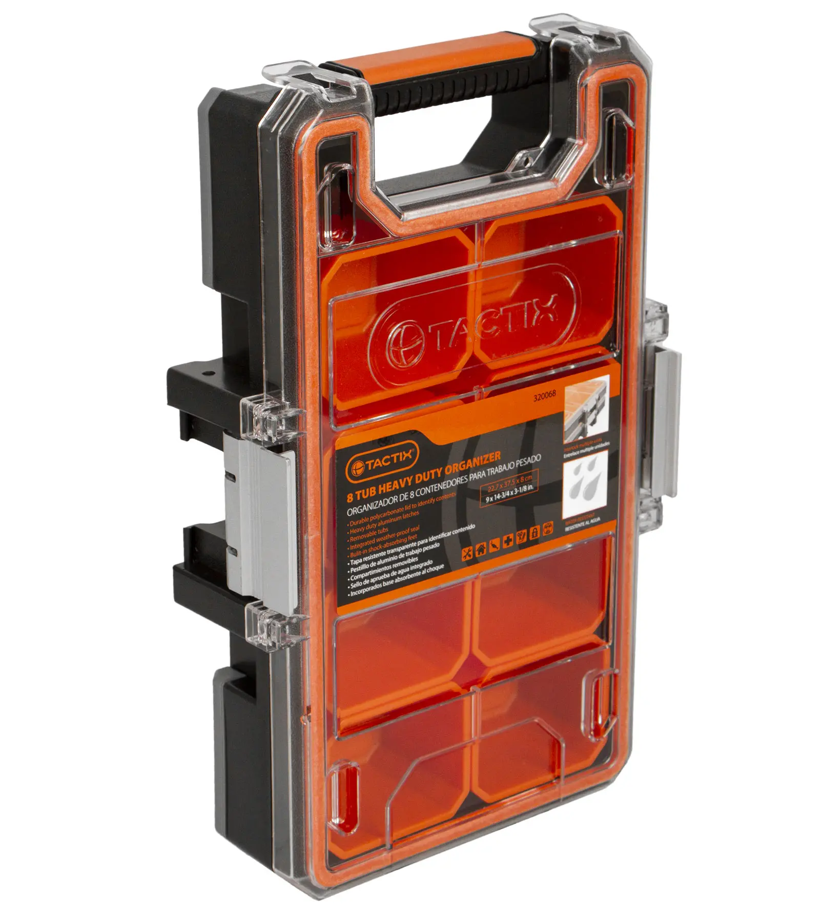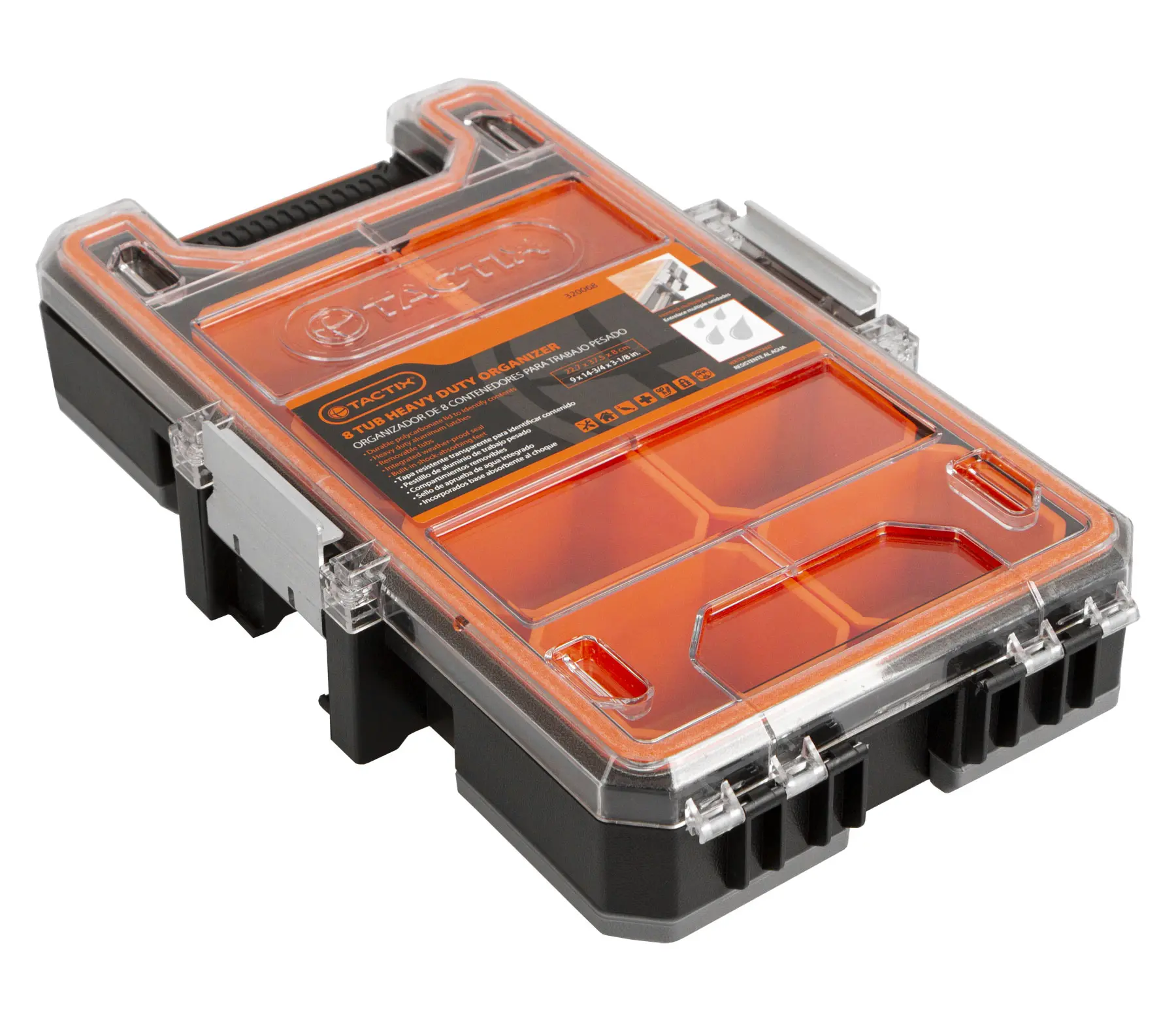 Vodotesný organizér s rozmermi: 227 x 375 x 80 mm, vyrobené z plastu, 8 vyberacích boxíkov, Tactix.