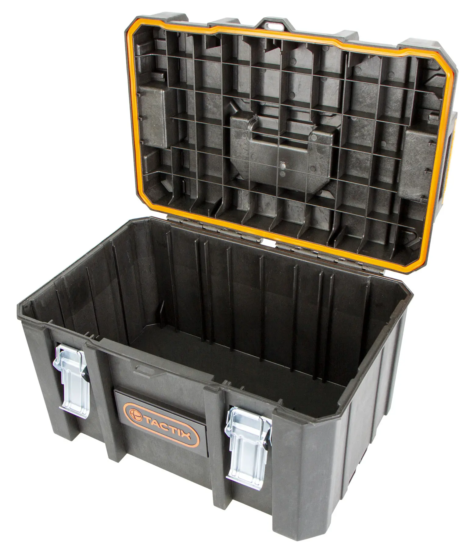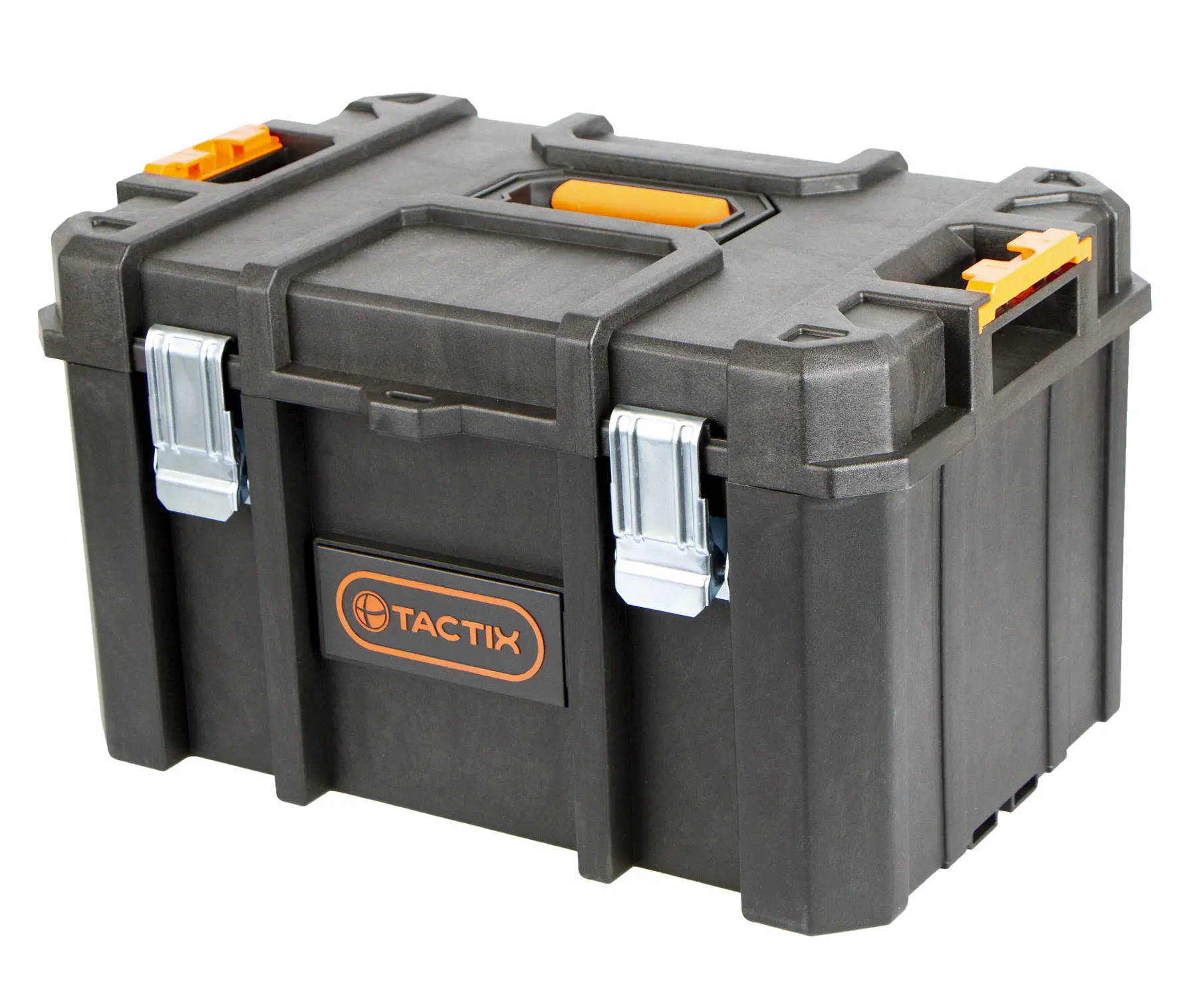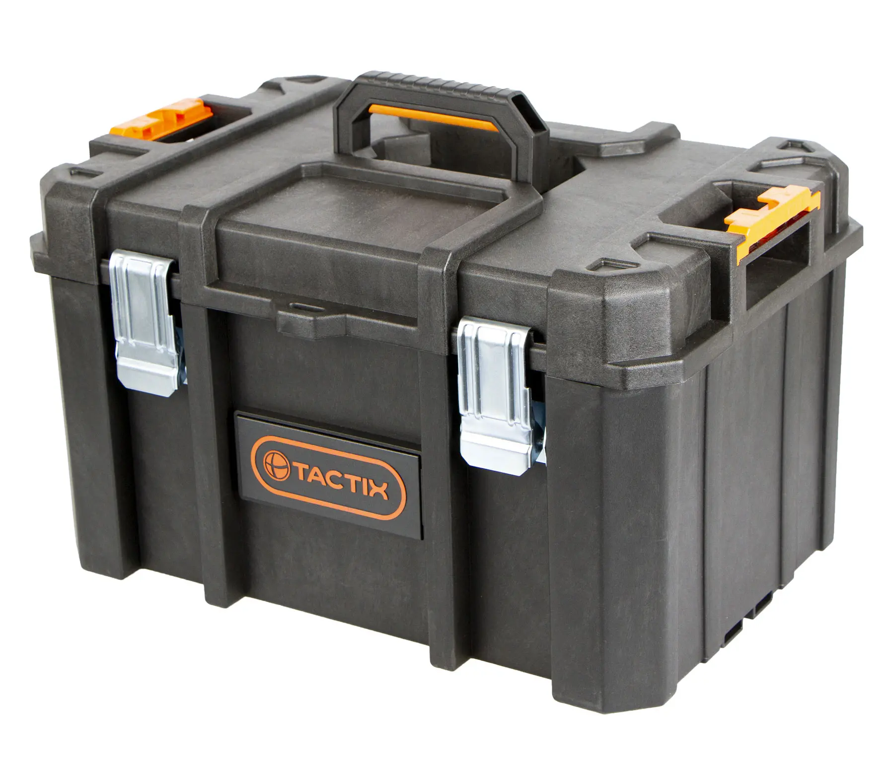 Odolný plastový kufor s vodotesným prevedením chráni obsah pred vlhkosťou, prachom a nečistotami. Je ideálny na bezpečné uloženie náradia a drobného materiálu.