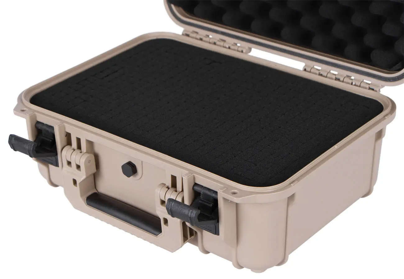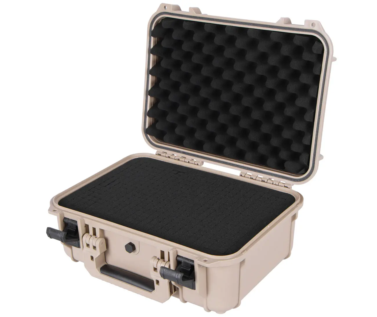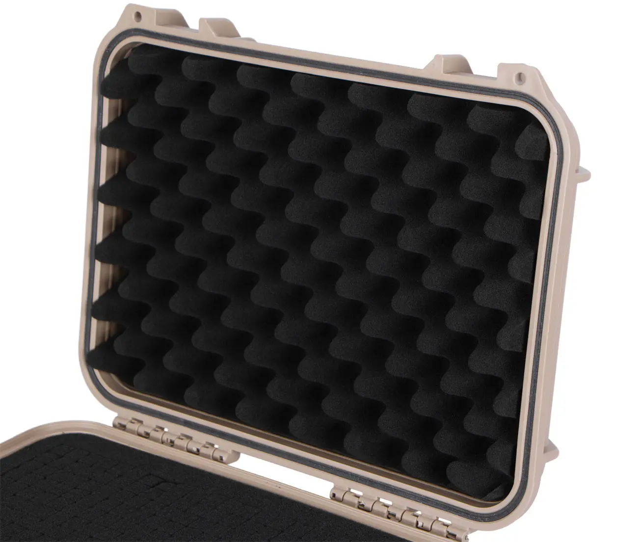 Vodotesný plastový kufor s predrezanou penovou výplňou. IP65, béžové prevedenie, rozmery: 415 x 3...