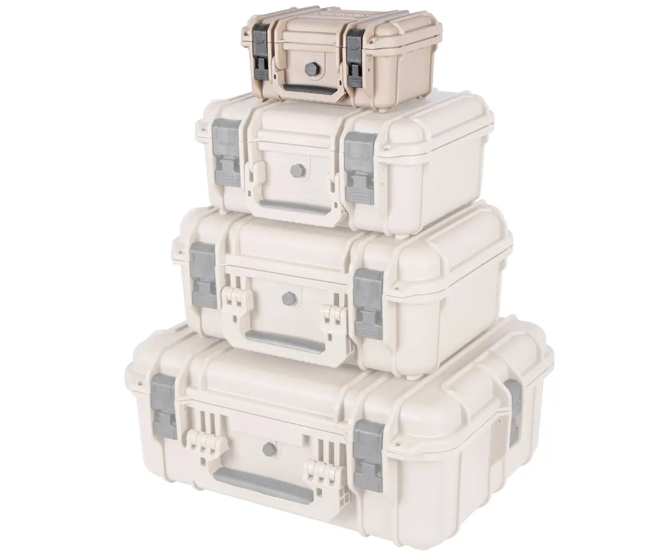 Vodotesný plastový kufor v béžovej farbe, na rôzne druhy krehkého náradia a vybavenia.