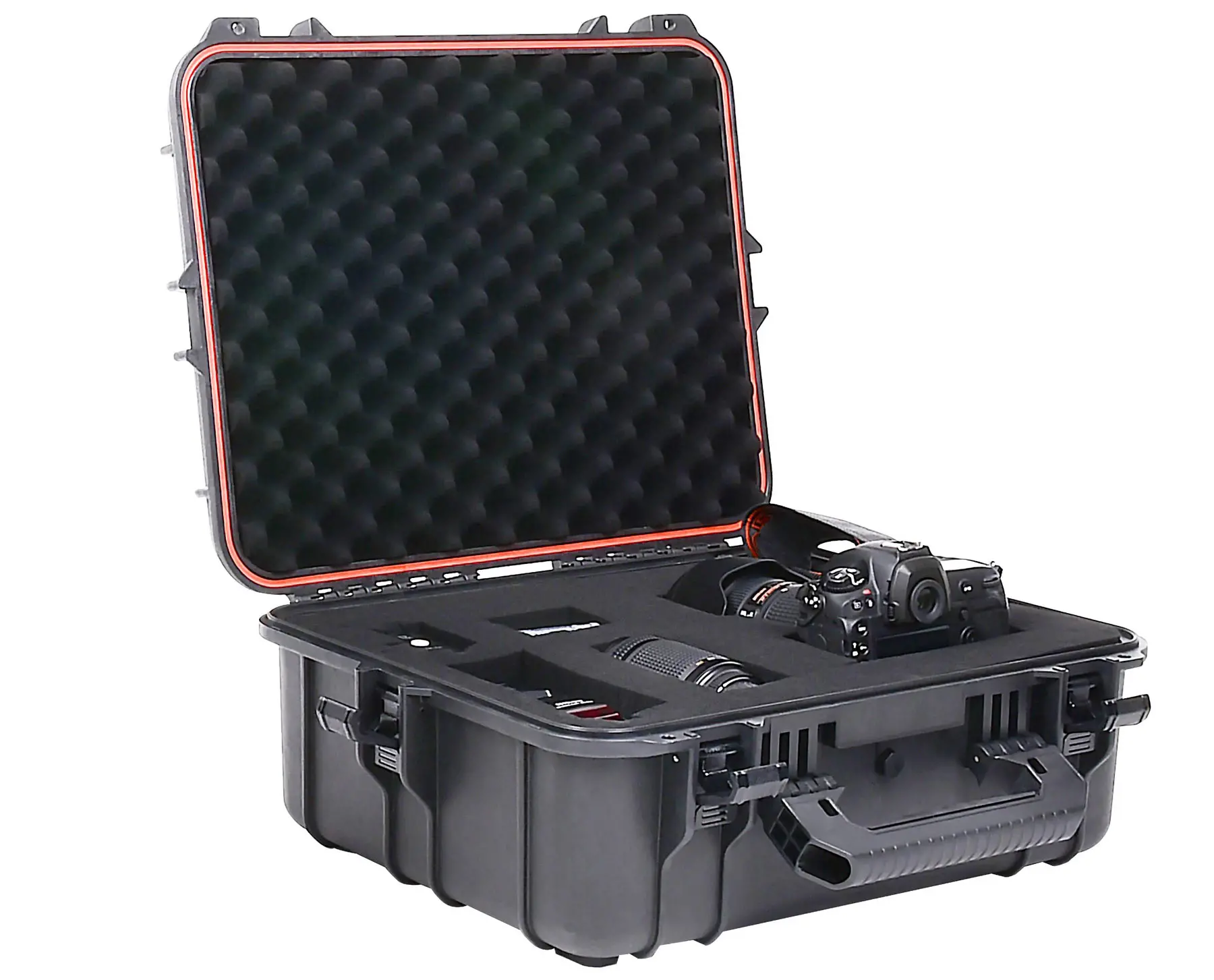 Vodotesný plastový kufor s predrezanou penovou výplňou. Rozmery: 544 x 436 x 216 mm.