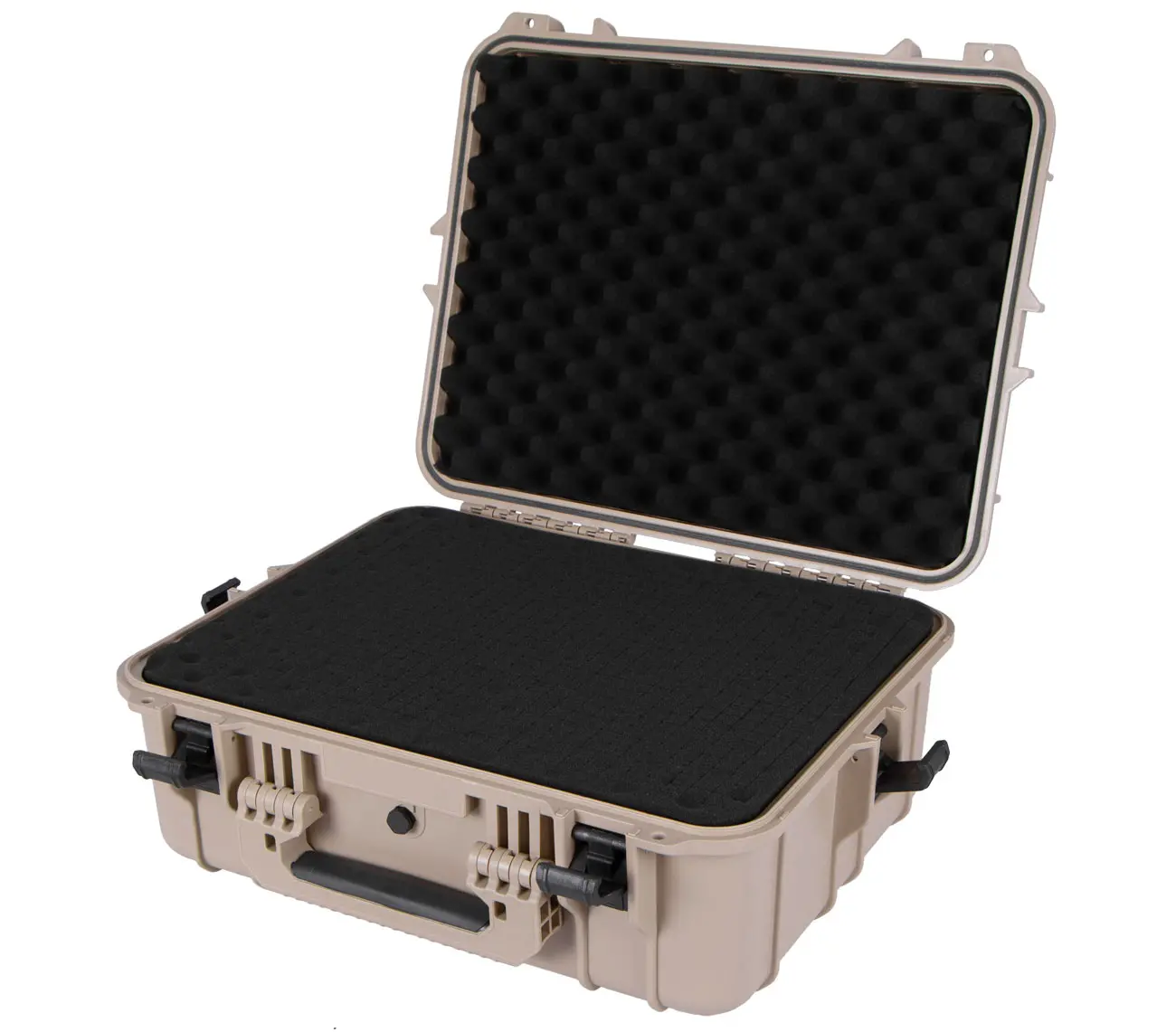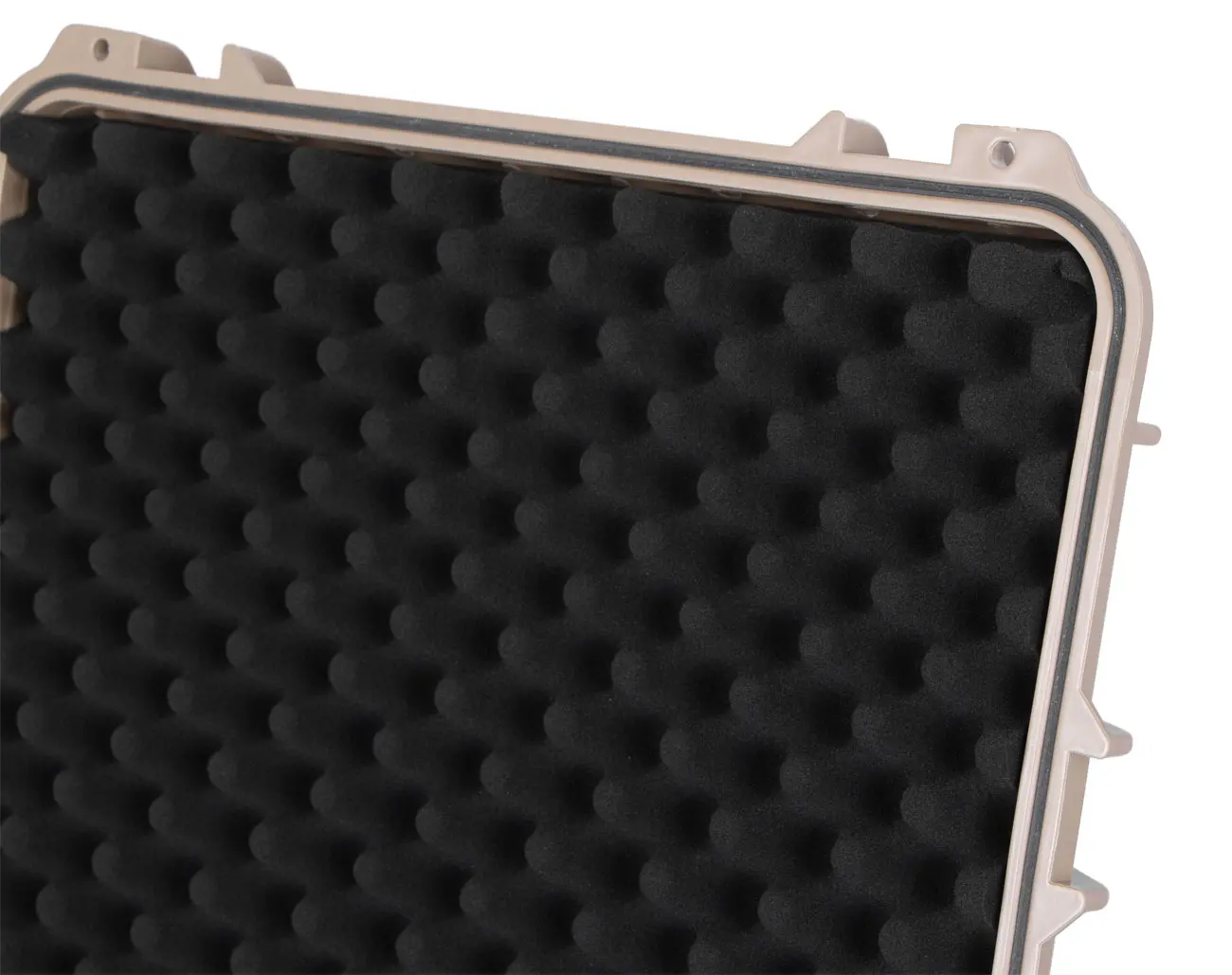 Vodotesný plastový kufor s predrezanou penovou výplňou. IP65, béžové prevedenie, rozmery: 544 x 4...