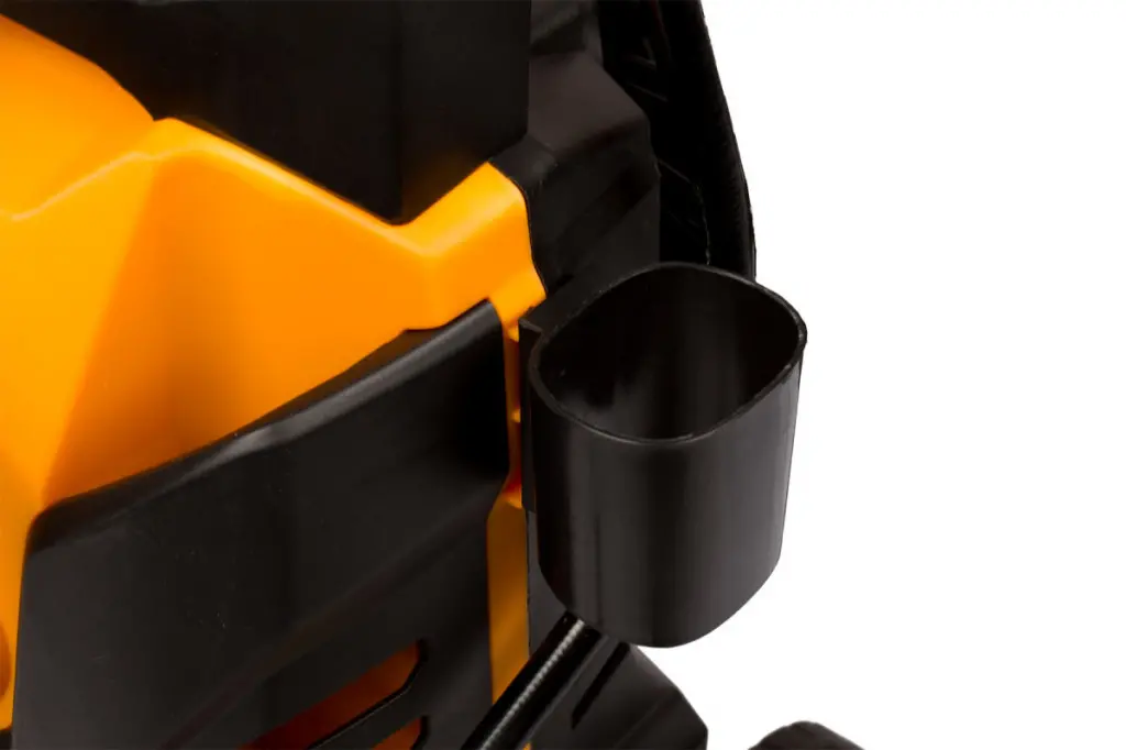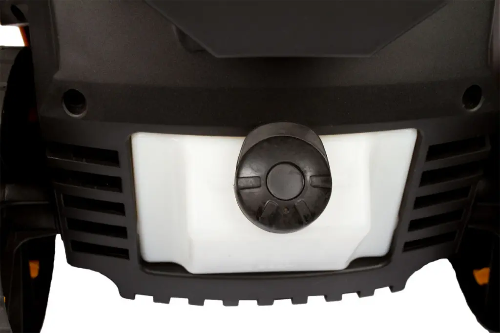 Na zadnej strane tela je potom držiak pre elektrický kábel, na ktorý ho naviniete po použití čističa. Pod ním je biela nádržka na saponát.