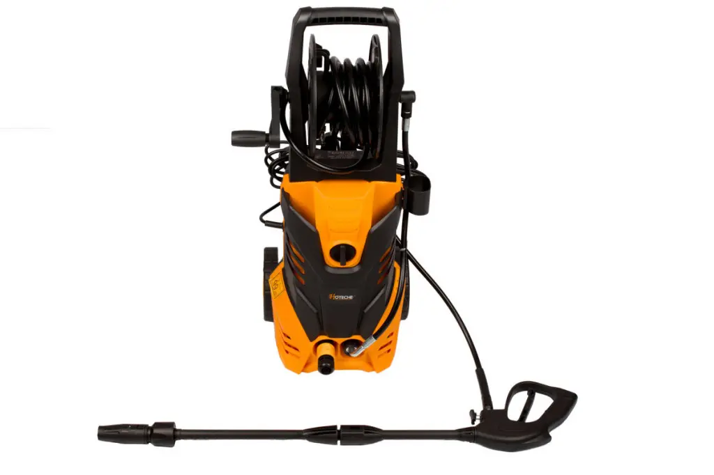 Vysokotlakový čistič je vyrobený z kvalitného pevného matného plastu a skladá sa z tela vapky, transportného madla s navijákom vysokotlakovej hadice, kolieska a vysokotlaková pištoľ.